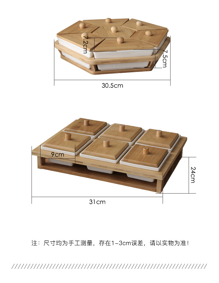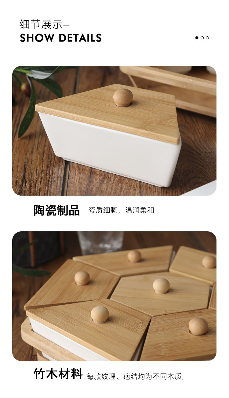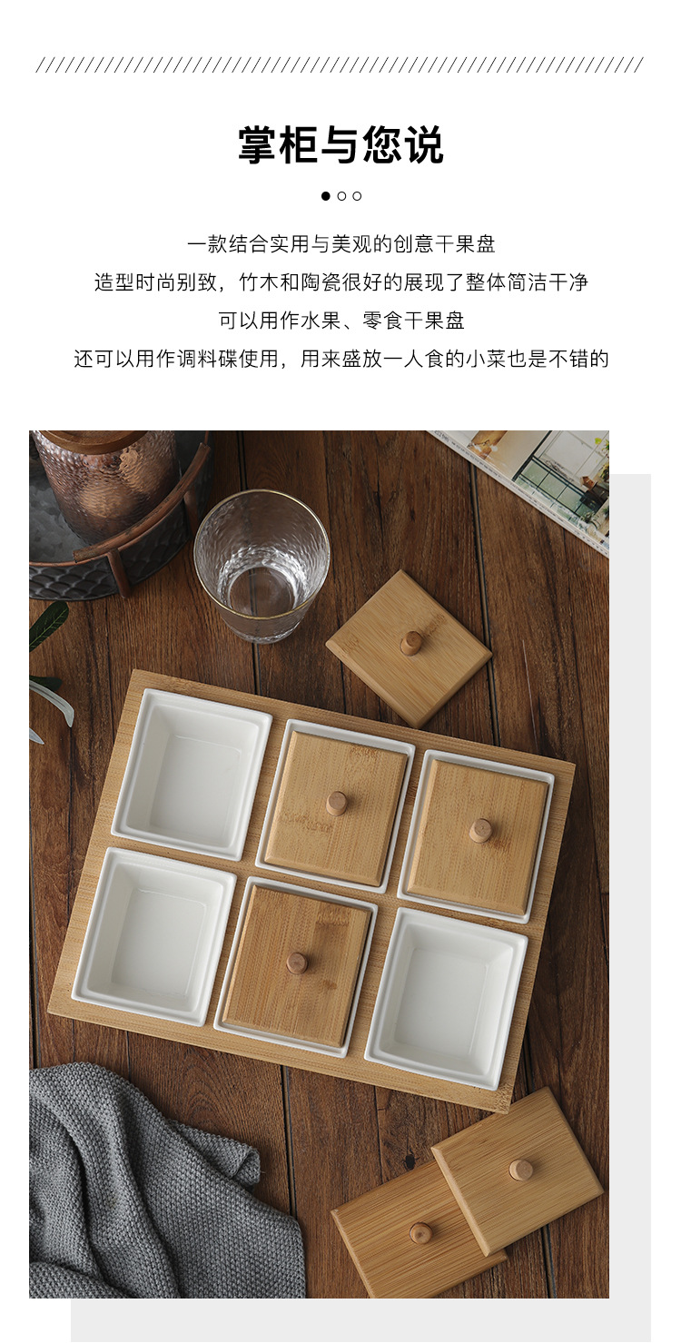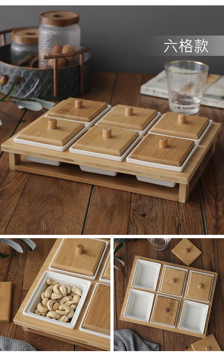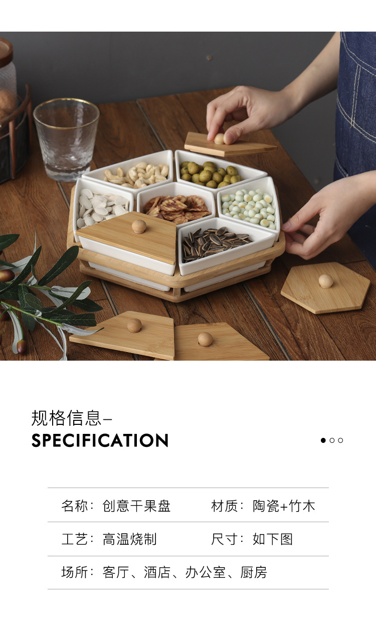 Bandeja de cerámica japonesa dividida en platos de frutas secas bandeja de bocadillos Sala de estar bandeja de frutas KTV bandeja de bocadillos caja de almacenamiento de semillas de melón