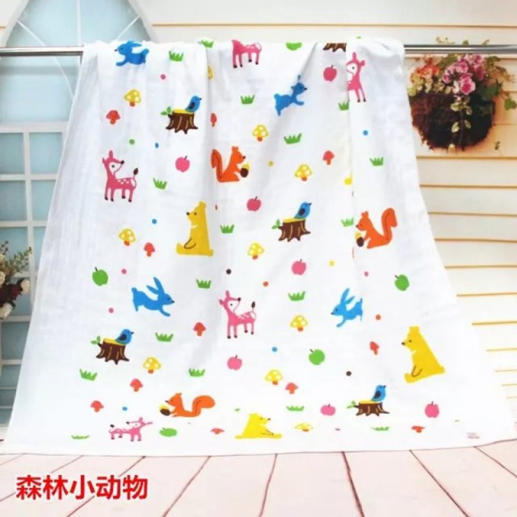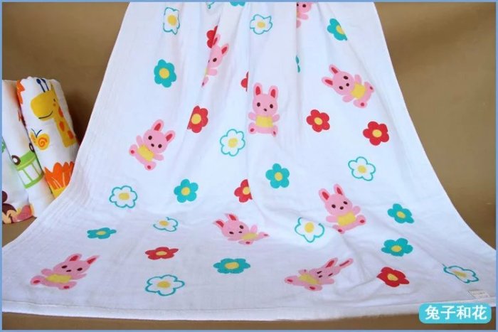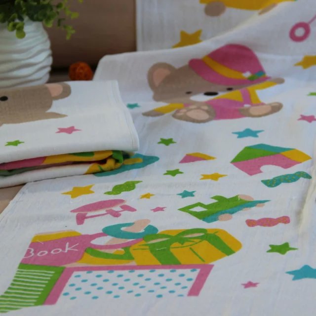 Algodón puro waffle gasa de panal bebé niño dibujos animados toallas de baño impresas toallas cuadradas 85 * 85