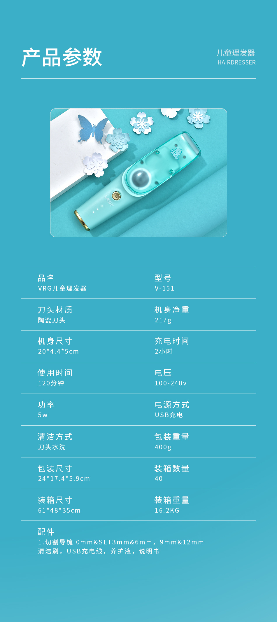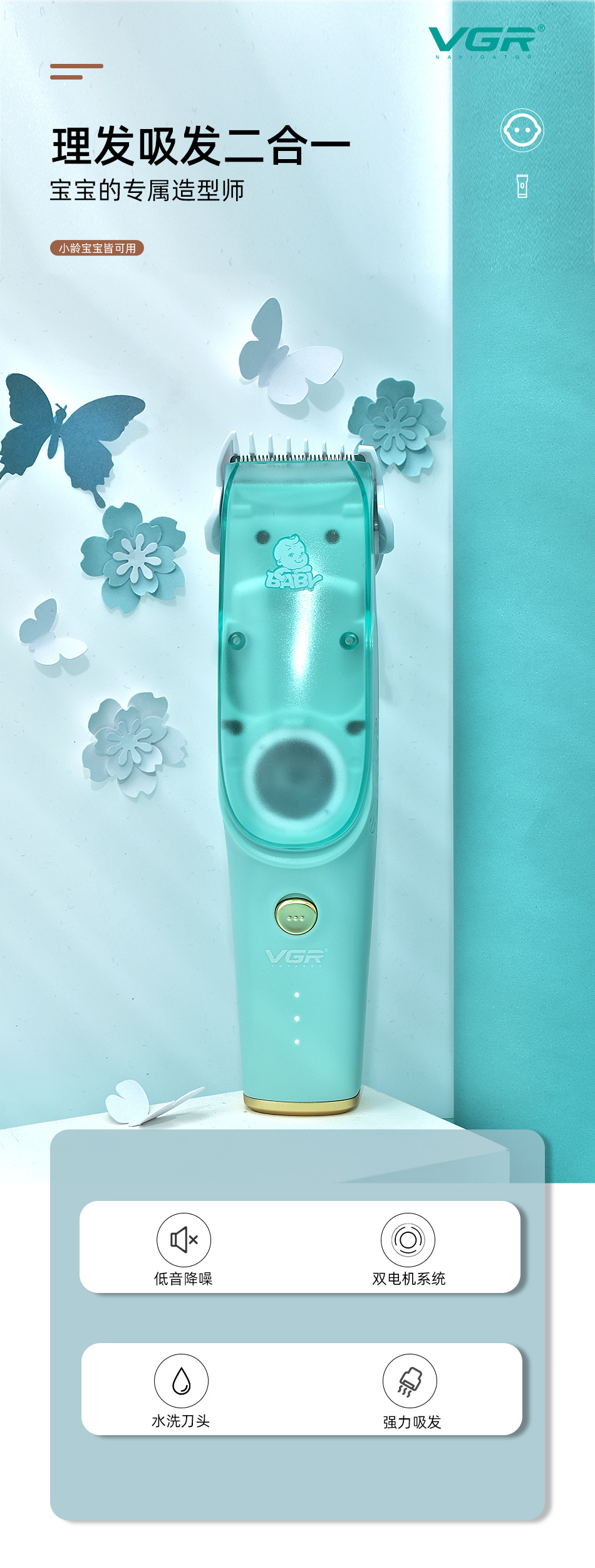 Vgr151 cortadora automática de pelo para bebés, pantalla digital silenciosa, empujador especial para bebés, cerámica infantil, tijeras de empuje eléctricas