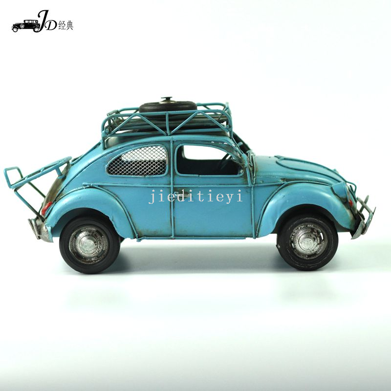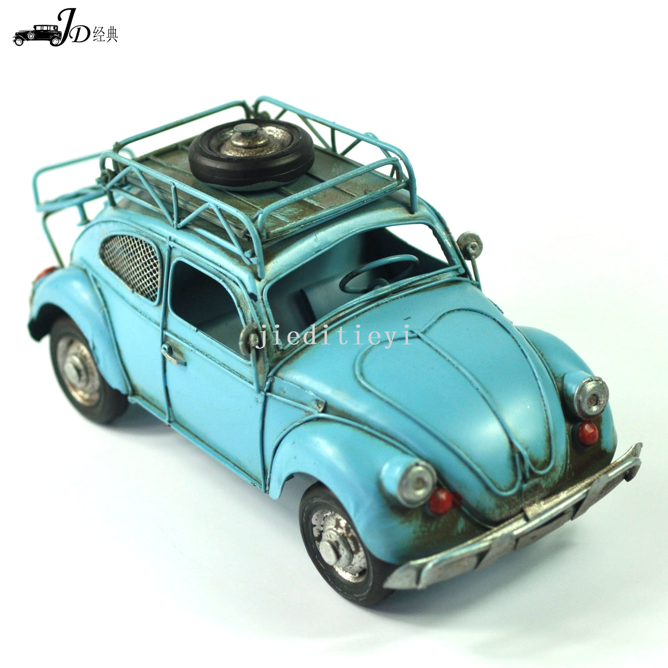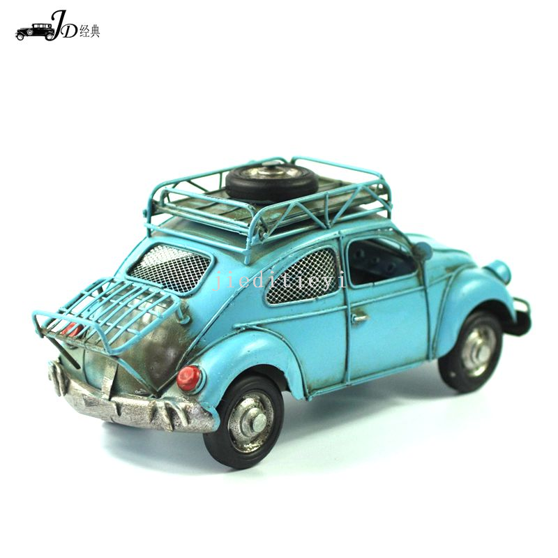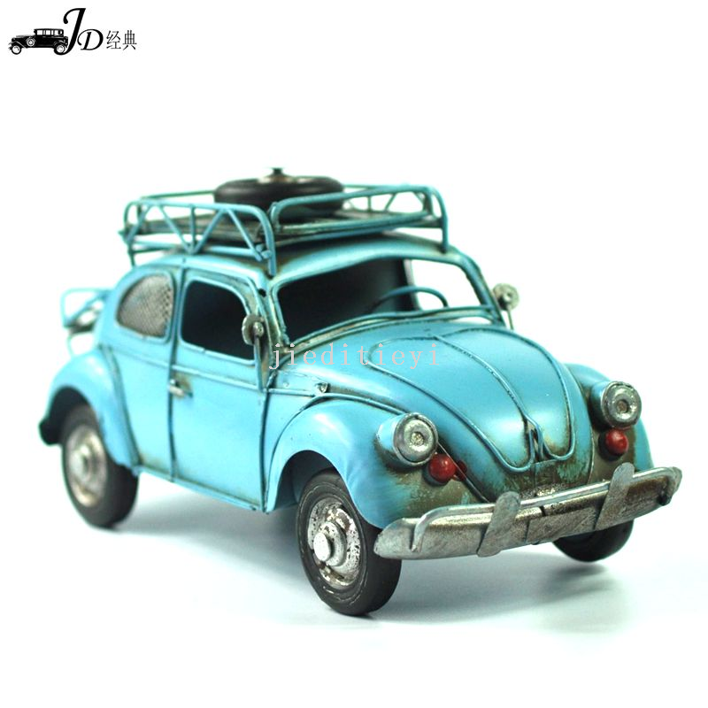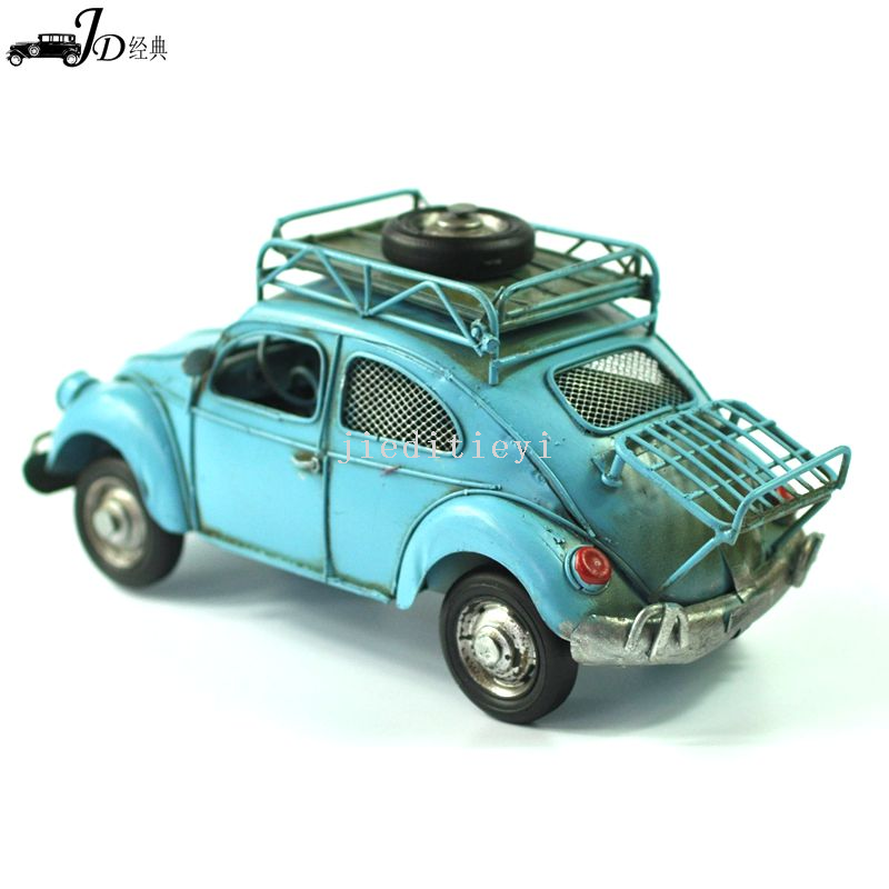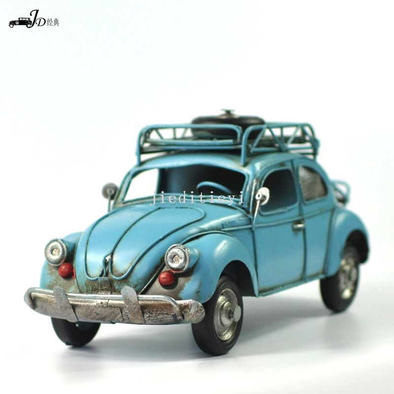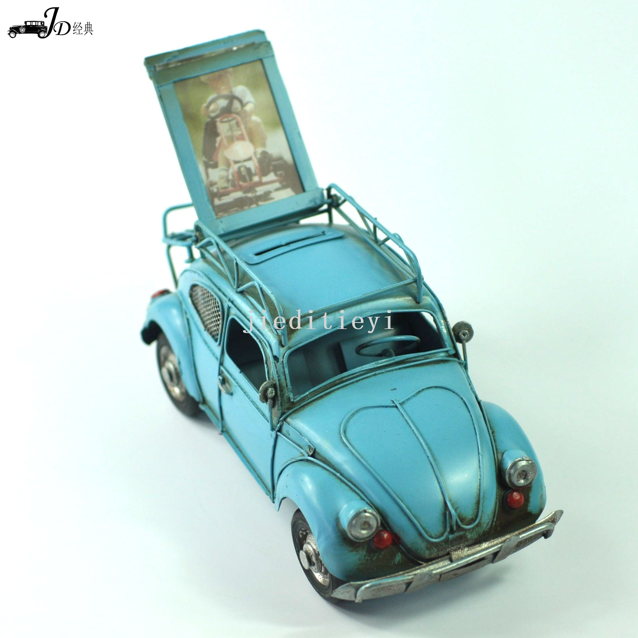 Fabricación artesanal de modelos de hojalata retro antiguos marco de fotos de escarabajo estilo europeo colección de coches de hierro retro para el hogar