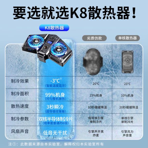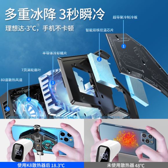 Radiadores de teléfonos móviles semiconductores radiadores de refrigeración de doble núcleo radiadores de teléfonos móviles sujetadores traseros radiadores de lámparas RGB coloridas