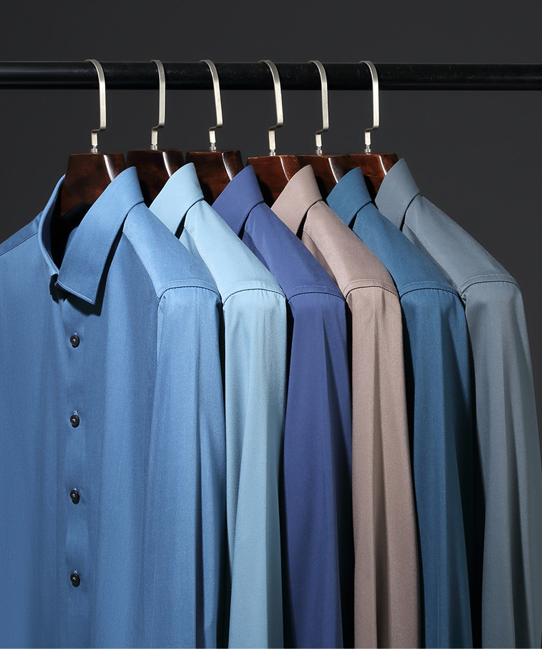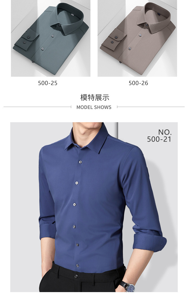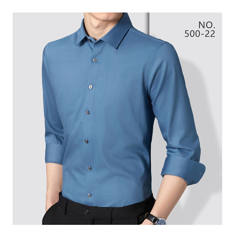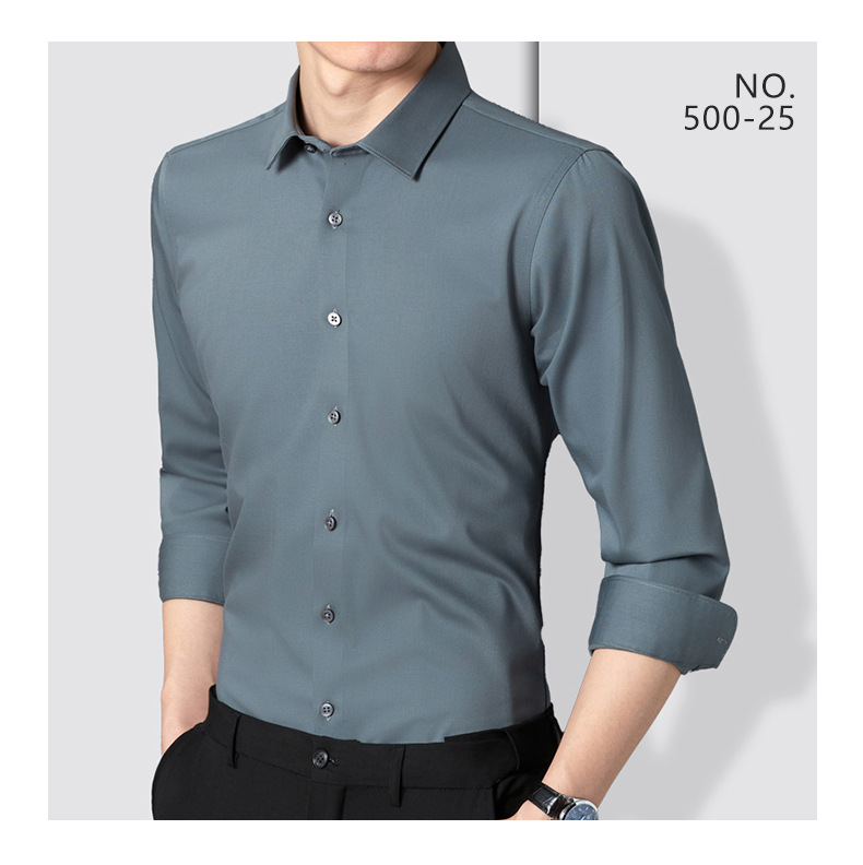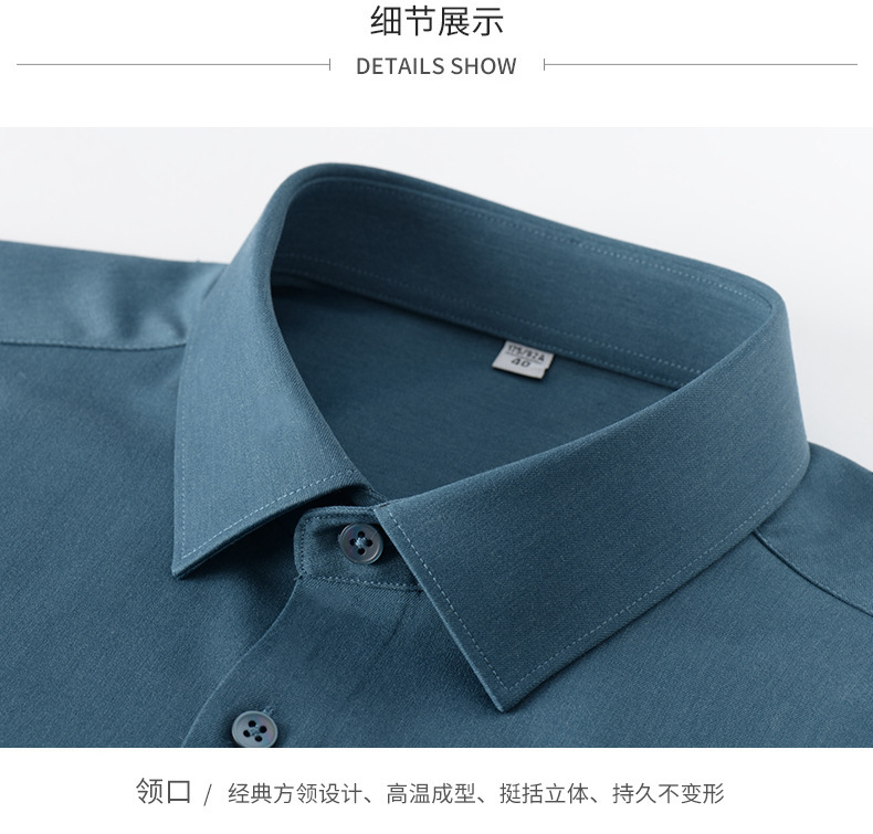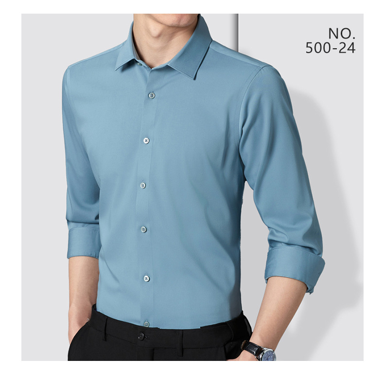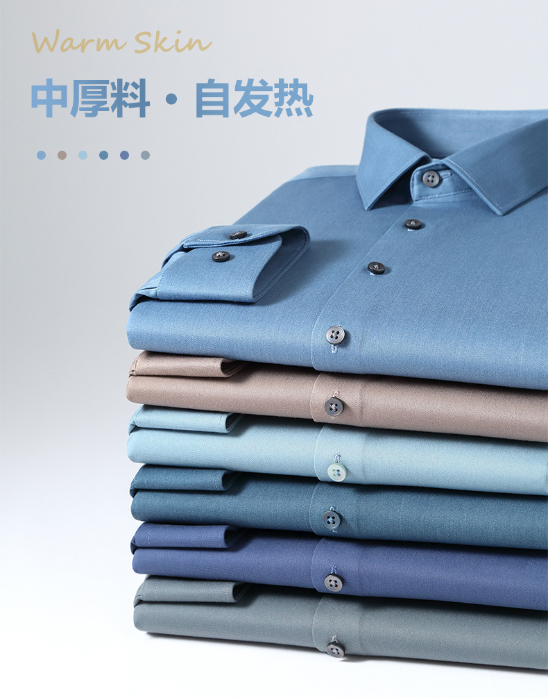 Camisa de otoño e invierno 2023 material grueso autocalentado camisa de manga larga de fibra de bambú resistente a las arrugas hombres de Negocios de color sólido