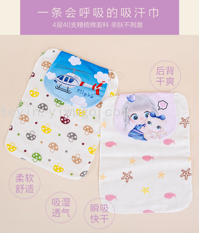 Bao algodón puro absorbe toallas de sudor bebés toallas de sudor almohadillas de algodón en la espalda de la gasa de algodón lindo absorbe el sudor