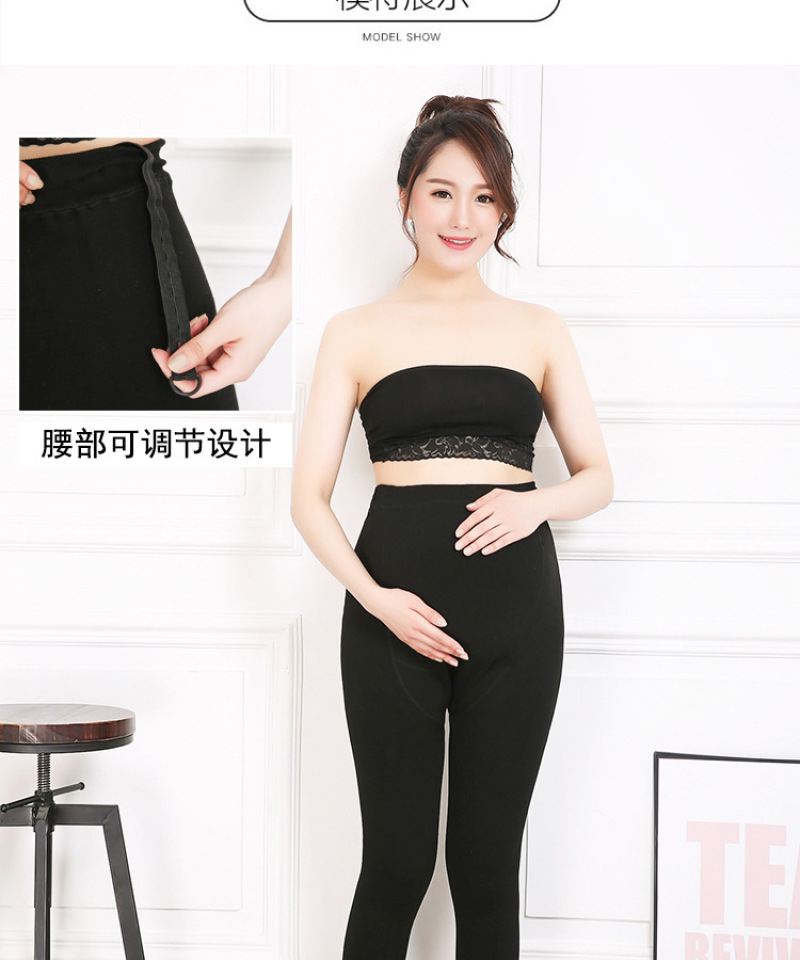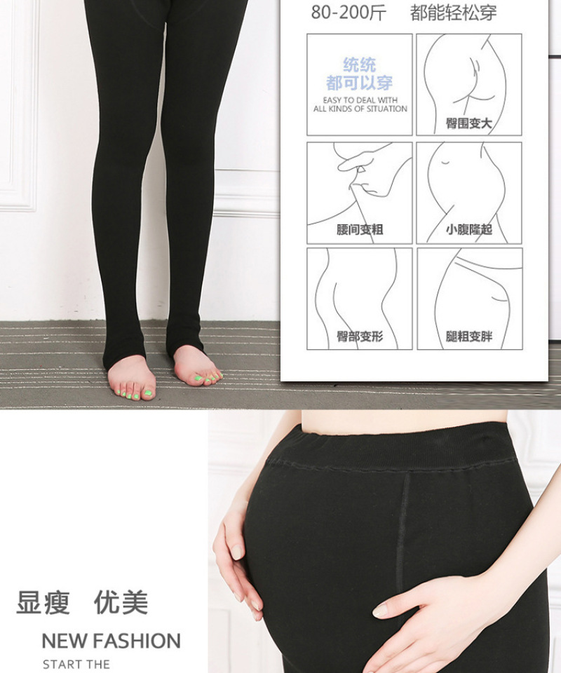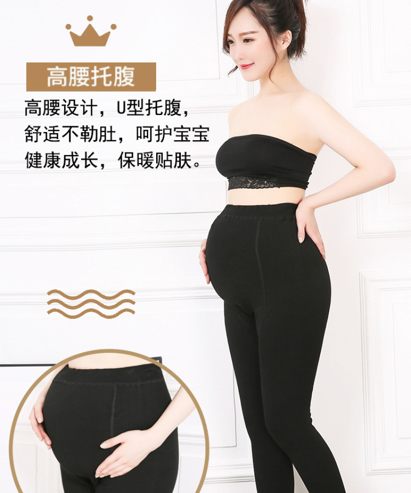 Las mujeres embarazadas usan pantalones de fondo en otoño e invierno y calcetines de algodón gruesos y cálidos. las mujeres usan ropa de mujer embarazada y pantalones integrados para sostener el abdomen.