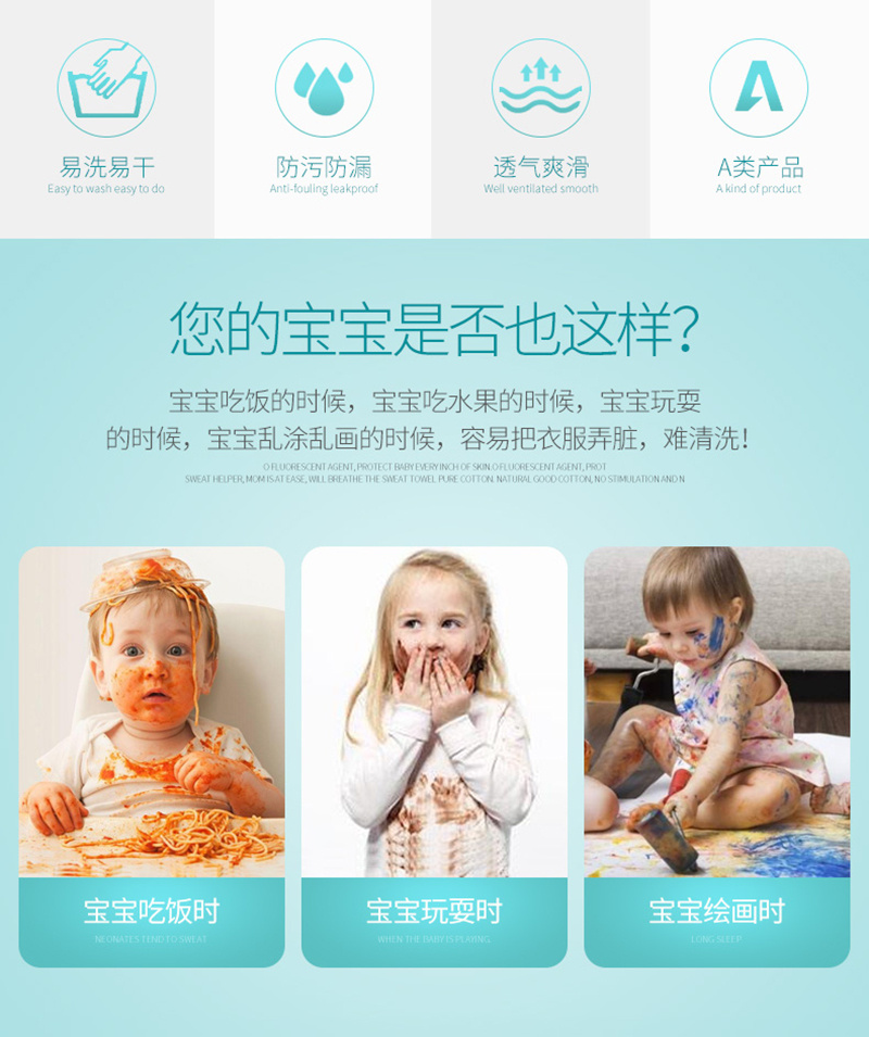 用途:用于宝宝吃饭玩耍时