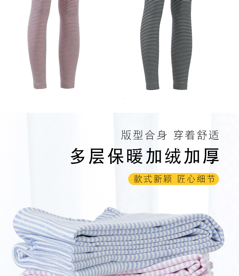 Modelo de pedido pantalones de otoño e invierno a rayas para mujeres pantalones de otoño cálidos para adelgazar sin marcas pantalones de fondo transpirables pantalones de algodón fabricantes de venta directa pantalones de pelo