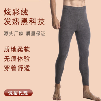 炫彩绒秋裤男德绒打底裤薄绒裤内穿发热无痕双面磨毛保暖裤秋冬