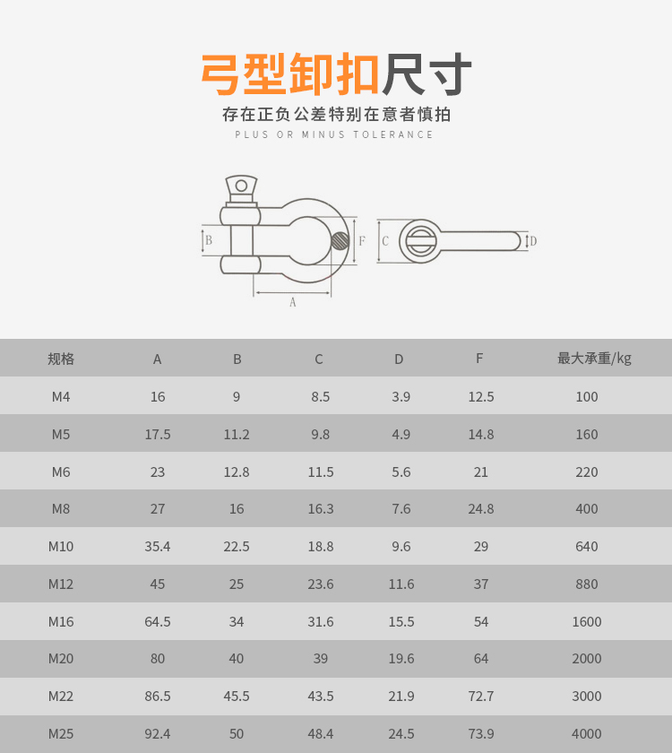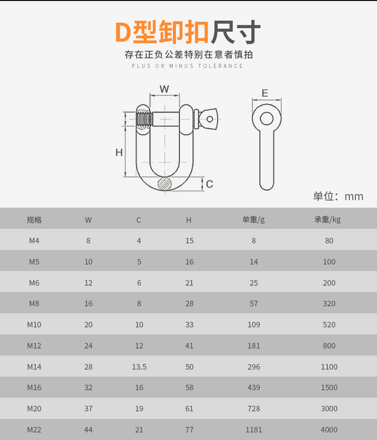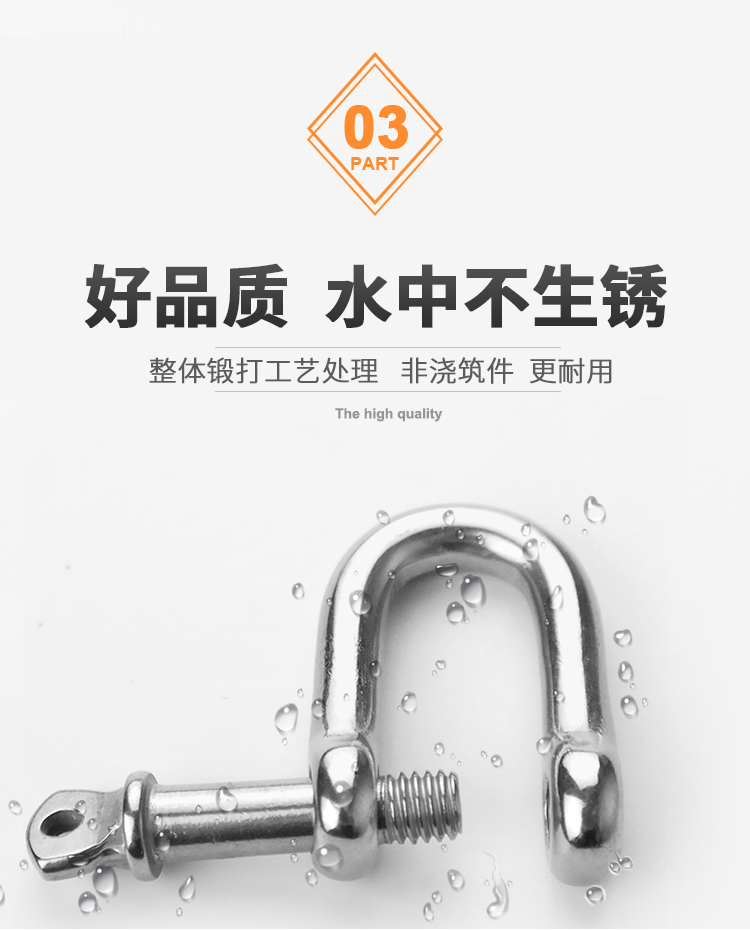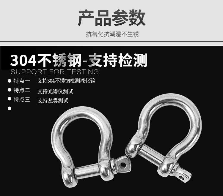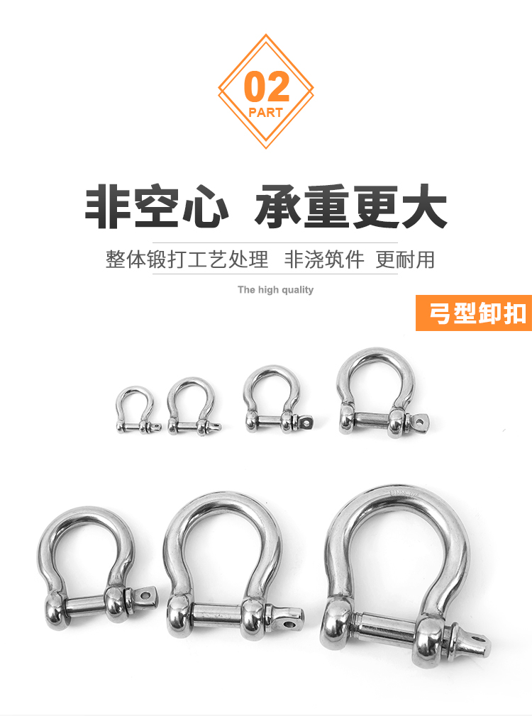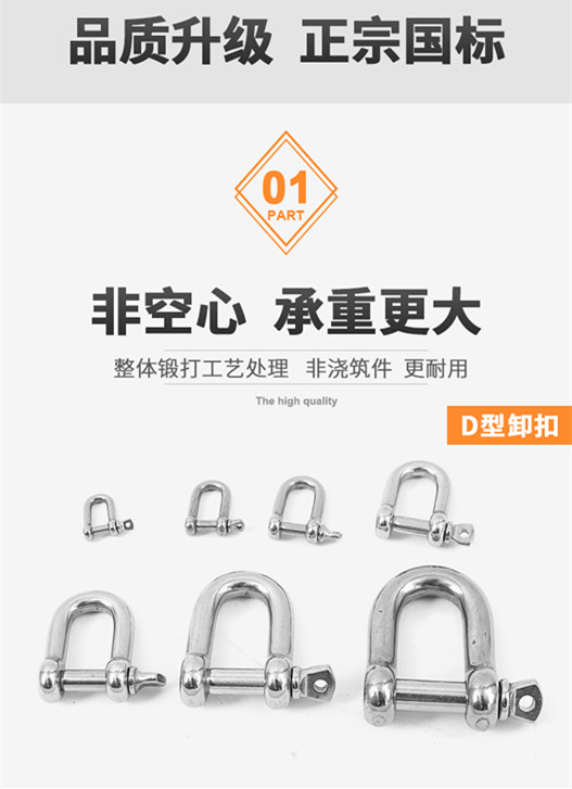 Grillete en forma de u de tipo D 304 grillete de herradura en forma de arco de acero inoxidable