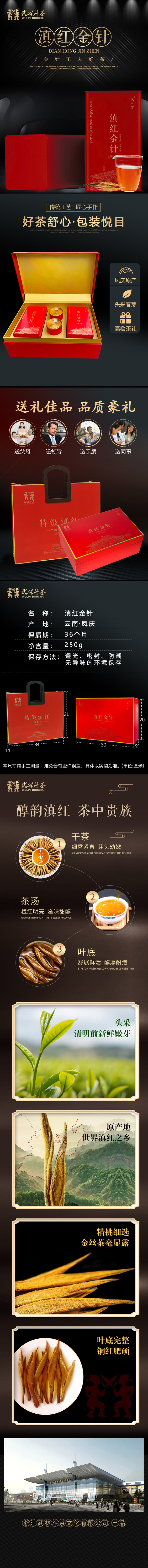 Wulin Doucha Black Tea Yunnan red Gold Needle gift Box contiene 250 gramos Yunnan Fengqing Yunnan red