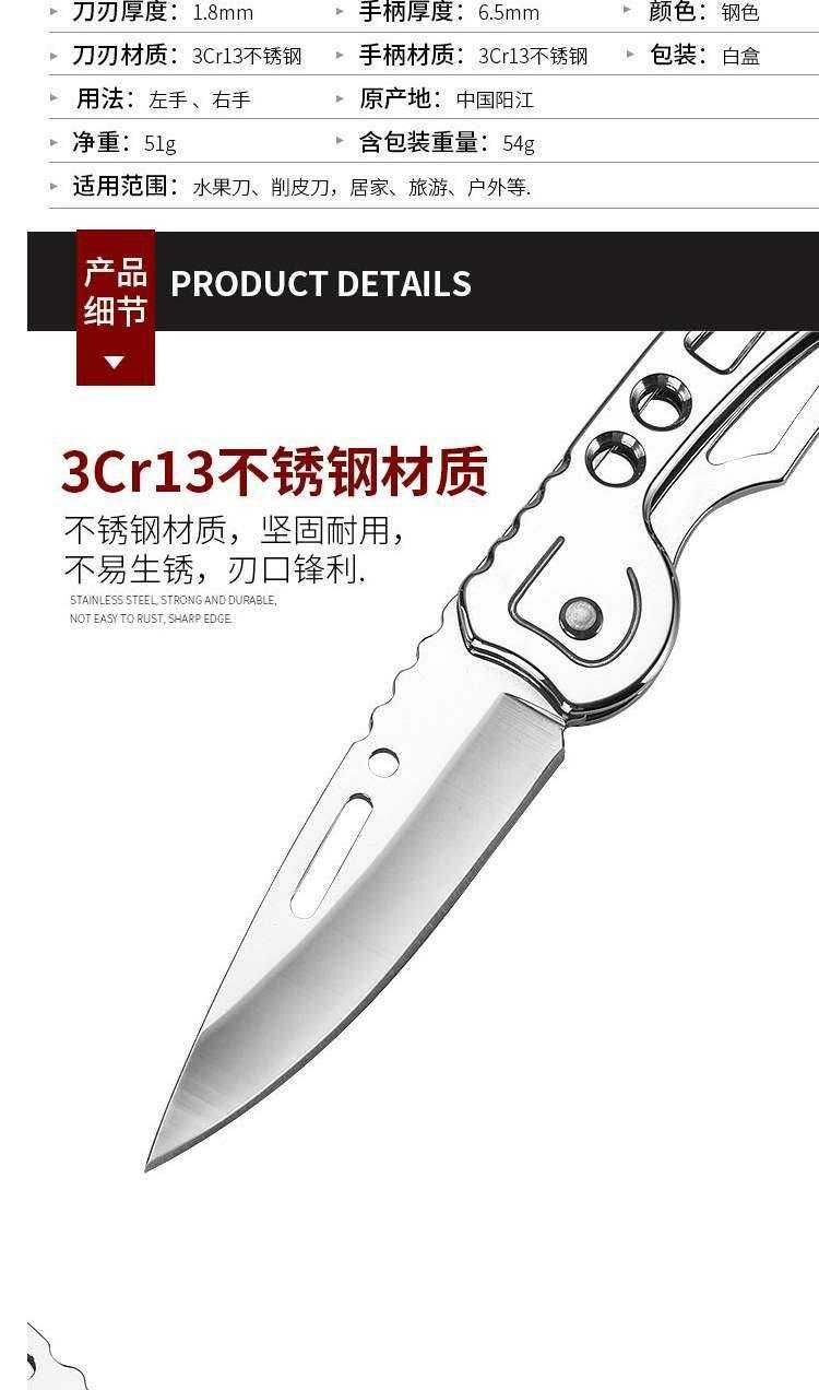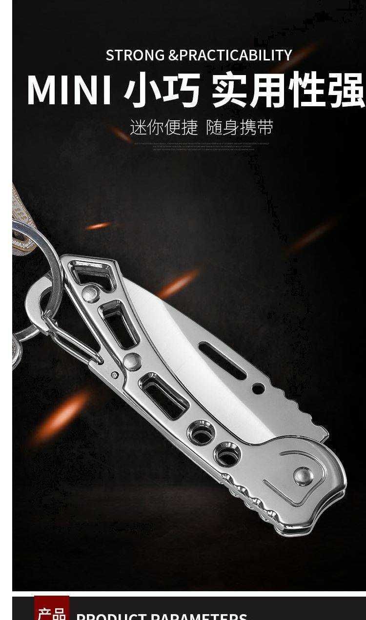 不锈钢折叠刀随身野营刀具 便携水果刀小刀开刃锋利钥匙扣创意小刀,