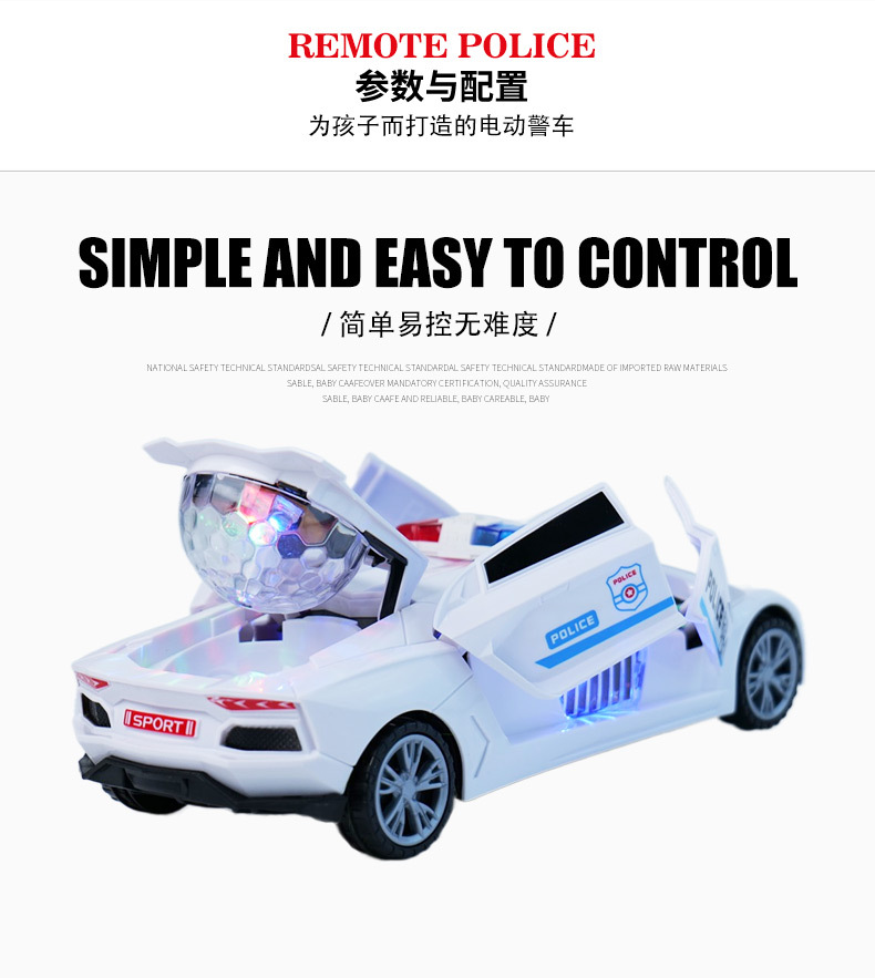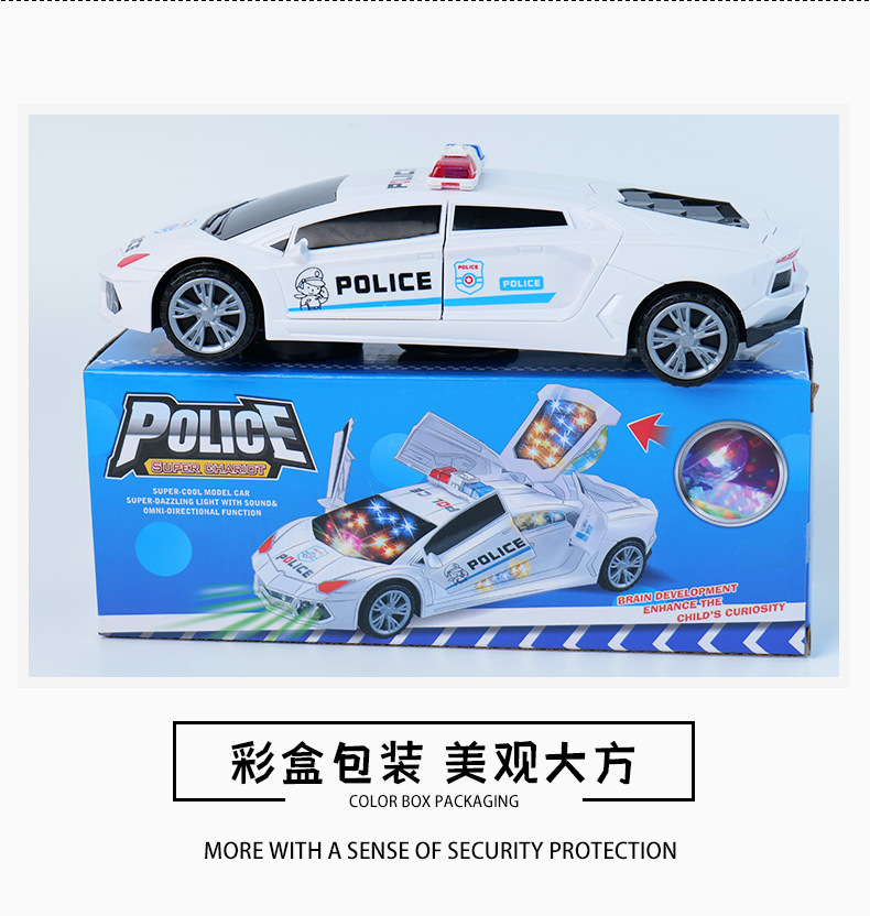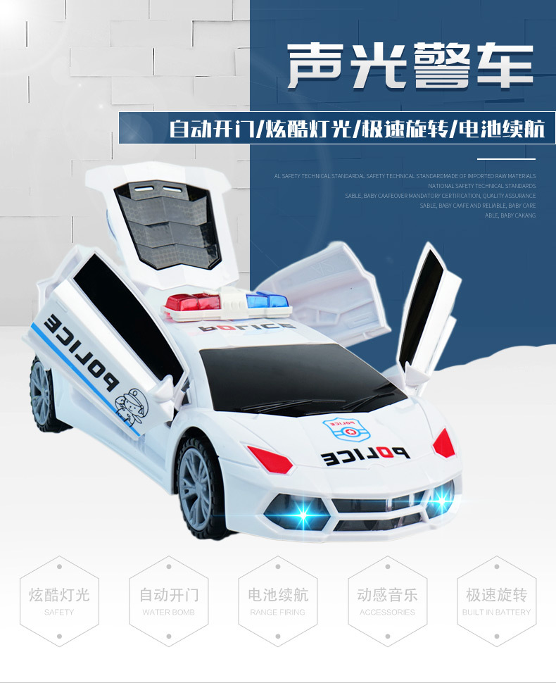 Coches de policía eléctricos para niños juguetes de iluminación música coches de música abren automáticamente puertas 360 grados de rotación al por mayor de juguetes de automóviles