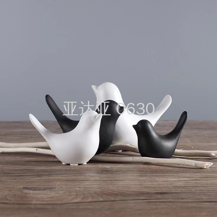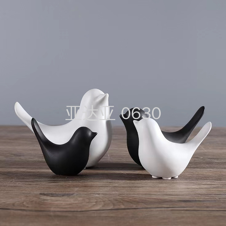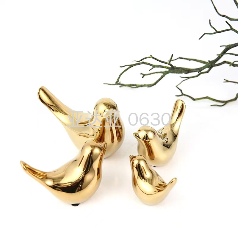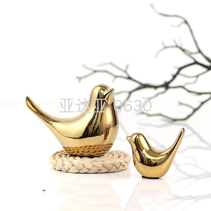 电镀金银小鸟陶瓷动物摆件家居瓷器工艺摆件黑白动物家居装饰品