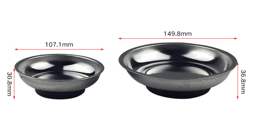 size diameter 80mm(3") depth:25mm material:touch steel(430/0.4mm) magnet:1000-1200 gauss pvc bottom prevent from being scratchet