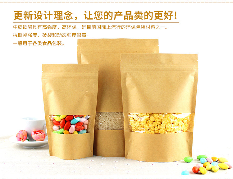 Bolsas de papel Kraft Bolsas de embalaje de alimentos bolsas de té y frutas secas bocadillos bolsas selladas de carne de res bolsas selladas secas