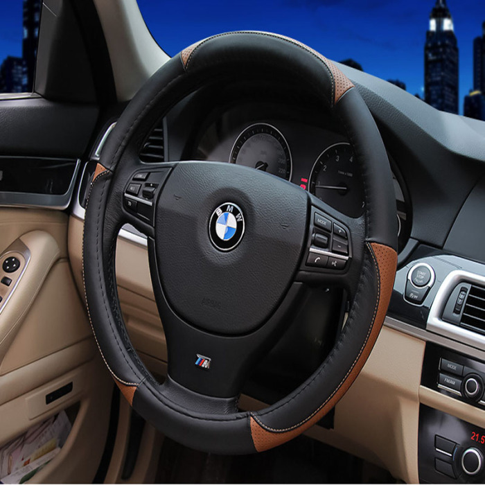 Funda de mango de cuero para la cubierta del volante del automóvil