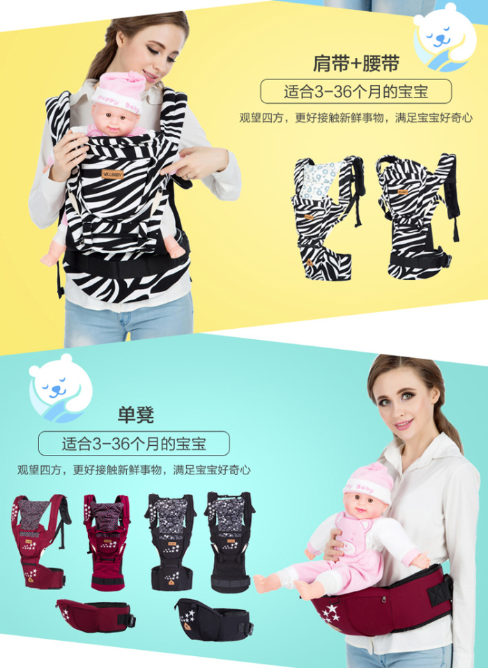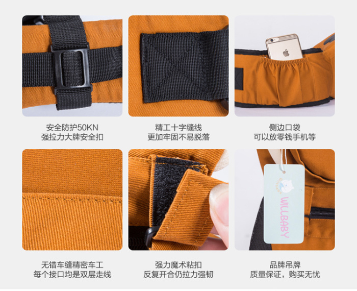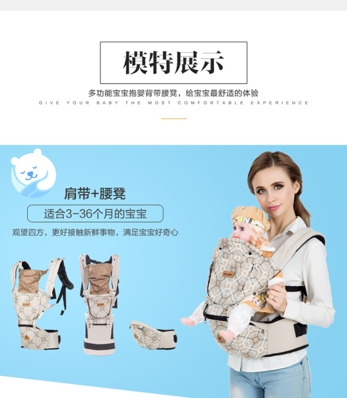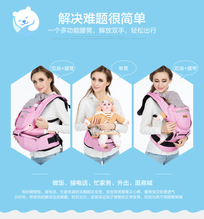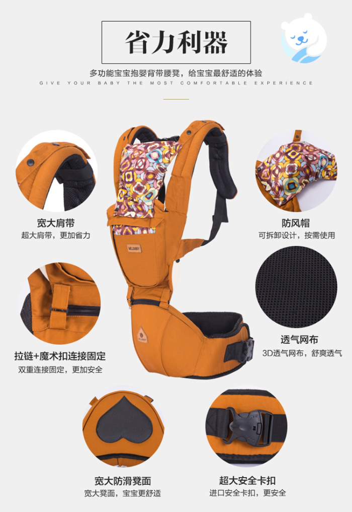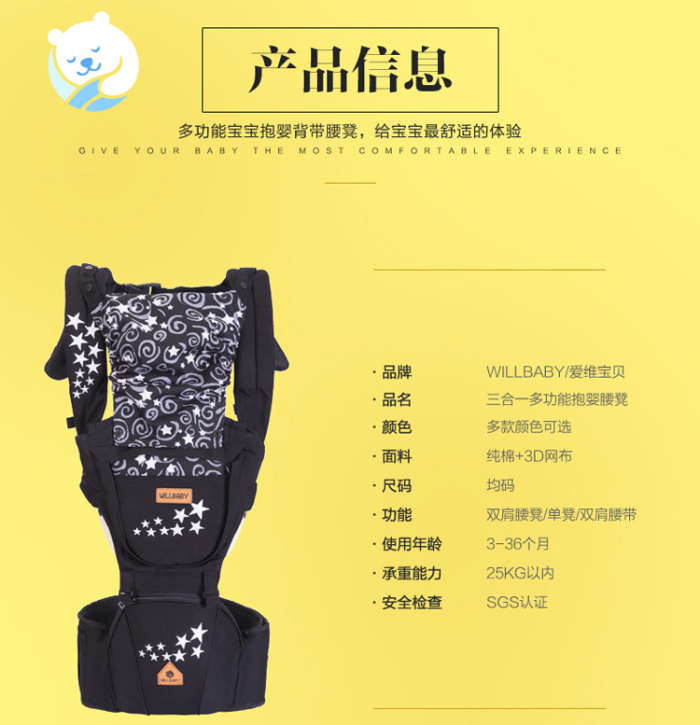 Wilbaby hombro multifuncional con taburete lumbar para bebés con algodón puro en la espalda del bebé
