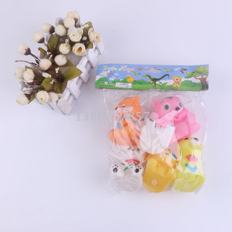 儿童动物戏水玩具捏捏叫洗澡玩具搪胶哔哔叫网袋装
