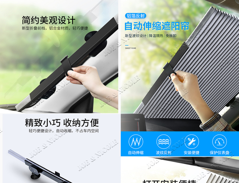 La Cortina solar telescópica automática del automóvil está sombreada por 100 veces, la protección solar y el aislamiento térmico están sombreados por 80 / 70 / 65.