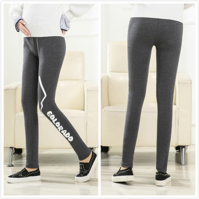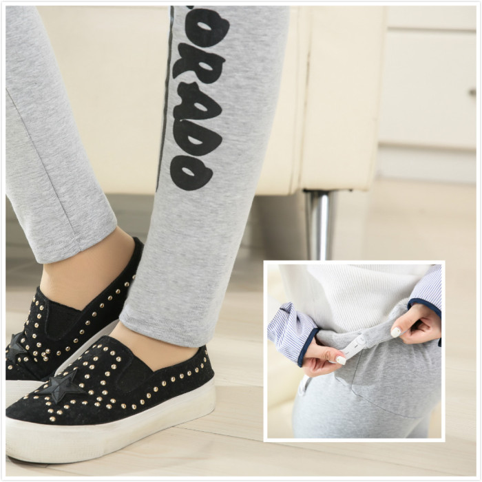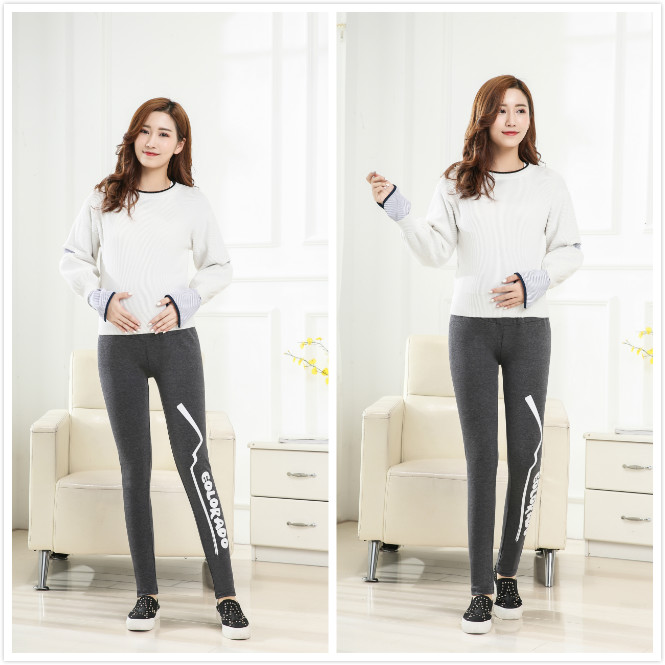 Las mujeres embarazadas ponen pantalones de fondo en el mercado en otoño e invierno, seguros, saludables y flexibles.