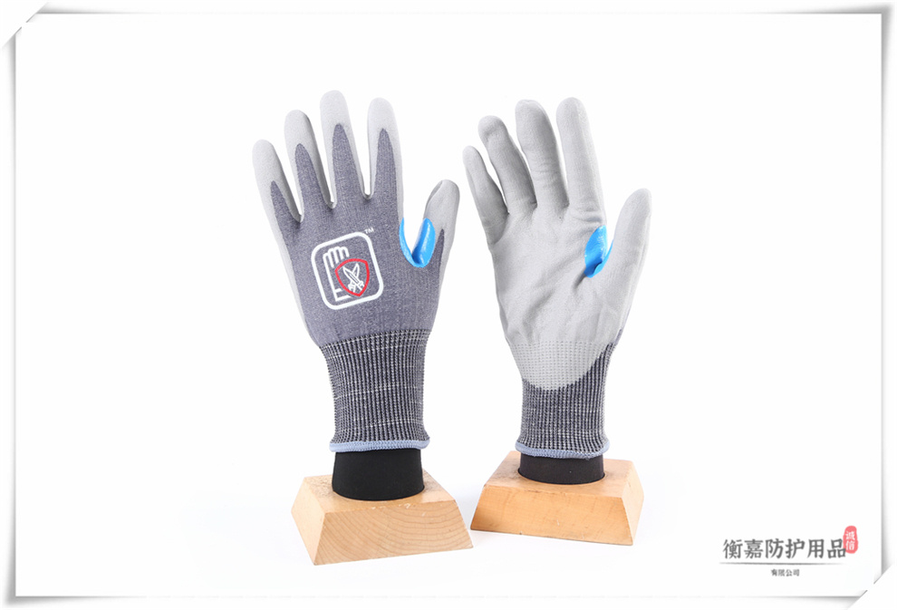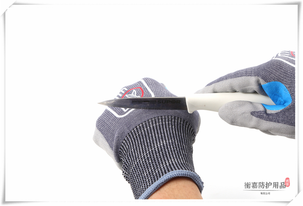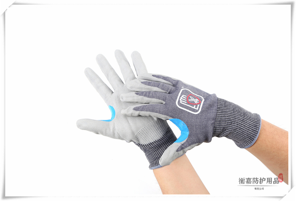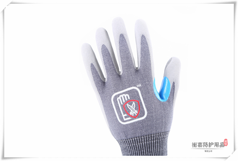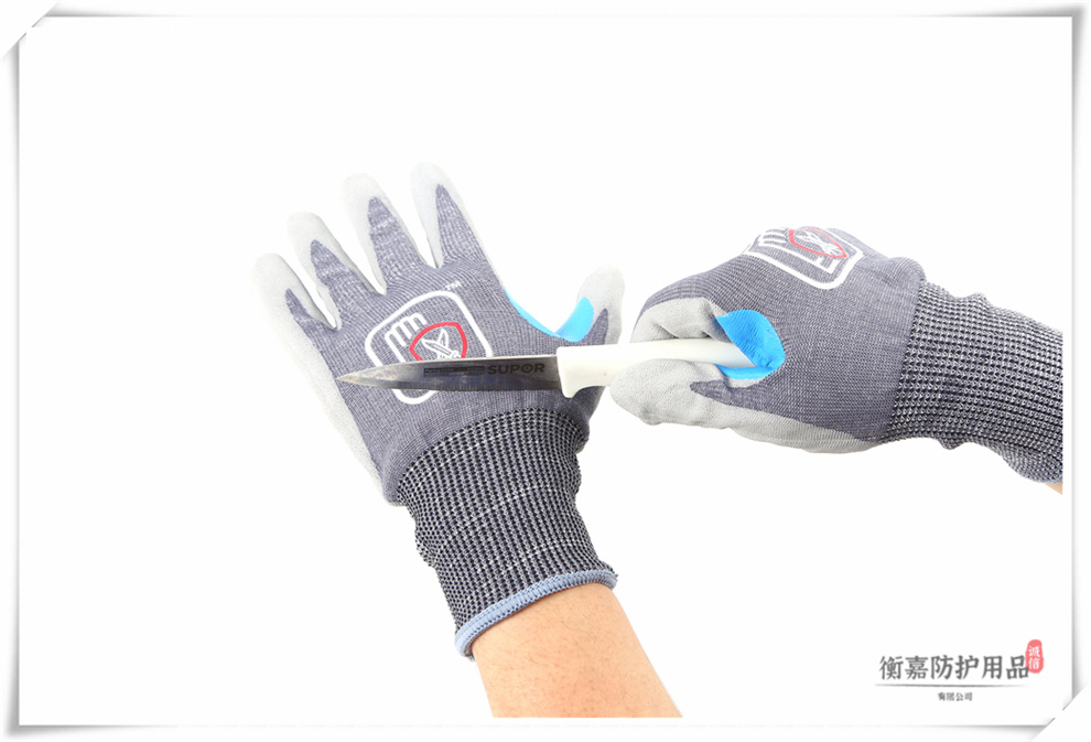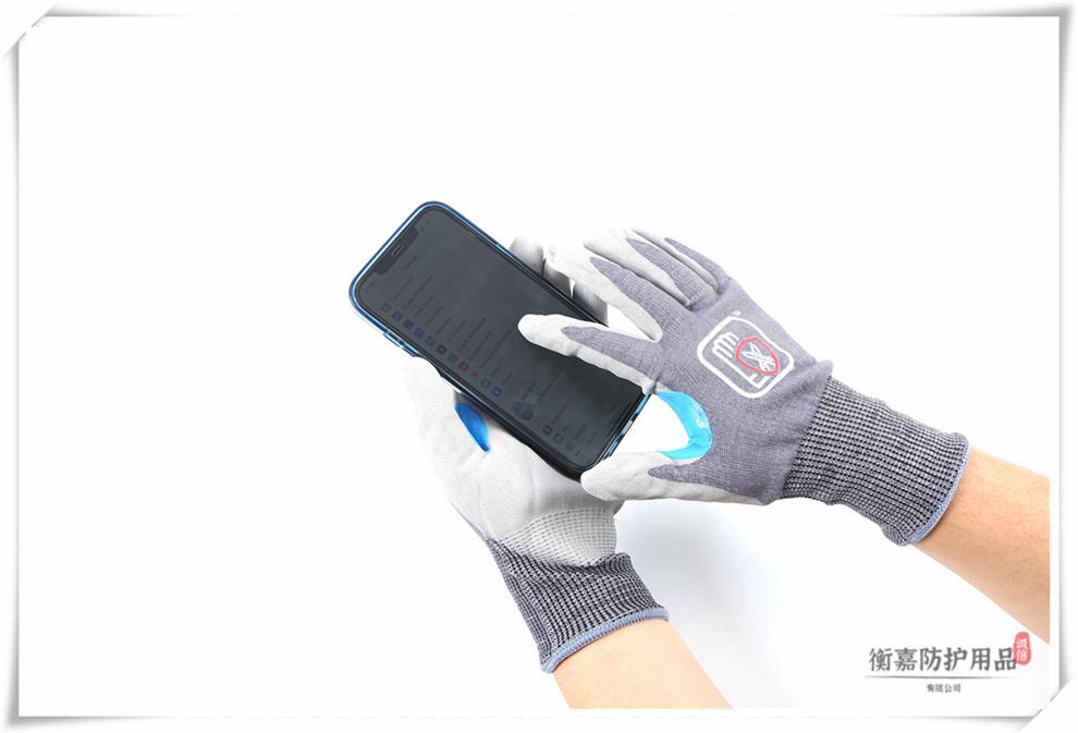 Pantalla táctil Pu guantes anti - Corte de cinco niveles guantes recubiertos de nylon guantes antideslizantes y duraderos guantes colgantes de protección laboral