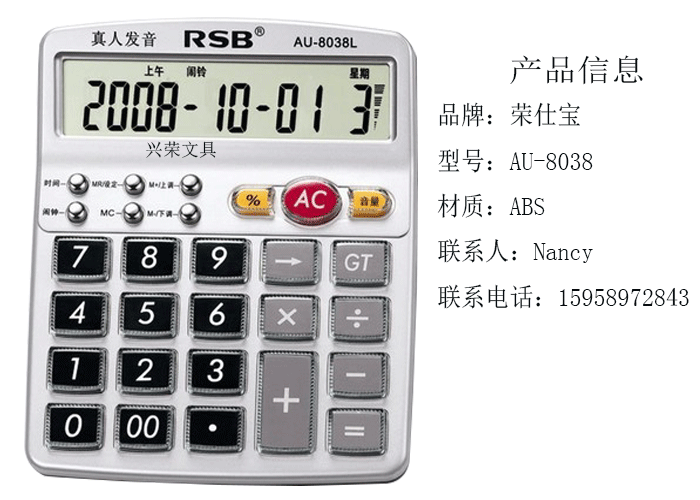 简介: ·12位数大字幕显示 ·30首流行音乐播放 ·真人发音 ·日历表 ·时间功能 ·闹钟功能 ·视觉角度 ·耐用美观透明塑料按键 ·尺寸:184x149x42毫米 ·净重:218克 ·毛重:298克