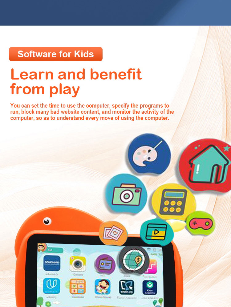 Los fabricantes venden directamente tabletas infantiles atouch kt2 de 7 pulgadas, Android Children 's Education app zoom resistente a la caída
