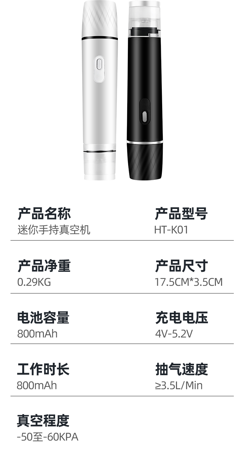 Bomba de vacío eléctrica de carga hantu pequeña máquina de bombeo de vacío de alimentos sellada mini barra de vacío portátil