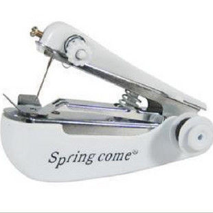 微型缝纫机正确使用方法 1、持机:用右手四指托住机座,大拇指自然地放在机身上盖顶端,平稳地持住整机。 2、穿线:将线轴上的线轻轻拉出。穿过引线图A,然后引入夹线调节片 B.再穿过引线圈。C.引过的线头暂放在机针旁边,另将穿线器从机针前面(向机身结合部)穿过机针孔,再将线头引入穿线器小孔中,退出穿线器拉出头线约2-3公分压线板压住即可待用 3、放布:用右手食指抬起压板,将准备好待缝的织物(厚度不超过0.8毫米)平整地放入压板下,轻轻放回压板压住织物; 4、缝纫操作:用左手持织物,右手大拇指轻轻地迅速下压上盖顶端压到底后,大拇指再下压,如此反复,送布机构自动将被缝物向左送出。持机右手逐渐右移,左手持布配合缝纫节奏轻轻地将被缝物向左方移动,直至缝纫结束; 5、结束:缝纫结束,用剪刀剪断线头,轻轻拉起压板取出织物。从被缝织物反面,拉出最后的一节线头,使它穿进旁边的一节线圈内拉紧并打一个结,针脚就牢固了,缝纫结束时切勿以硬拉织物方式来拉断线头,以免拉坏机针、针脚; 6、本机能自动进布和调节针脚间的松紧,但要注意下列几点很有必要: A.针脚太紧,将压力螺母稍向逆时针调; B.针脚太松,将压力螺母稍向顺时针调; 所示,系正确的针脚松紧。如需针脚大些,左手拉布可稍快些。如需针脚密一些,左手拉布可稍慢一些; 7、换线团;如换用大线团,可将备用的接长杆与线筒轴连接,套入大线团。把备用的塑料帽置于杆之末端固定大线团,然后重新穿线,调整线的松紧后进行缝制;使用50#-90#棉线或合成线效果很好; 8、换针:松开固定螺丝,取出断针。所示装上新针,注意要将针的平整面对正固定螺丝,不可装反。针型DHK-14。