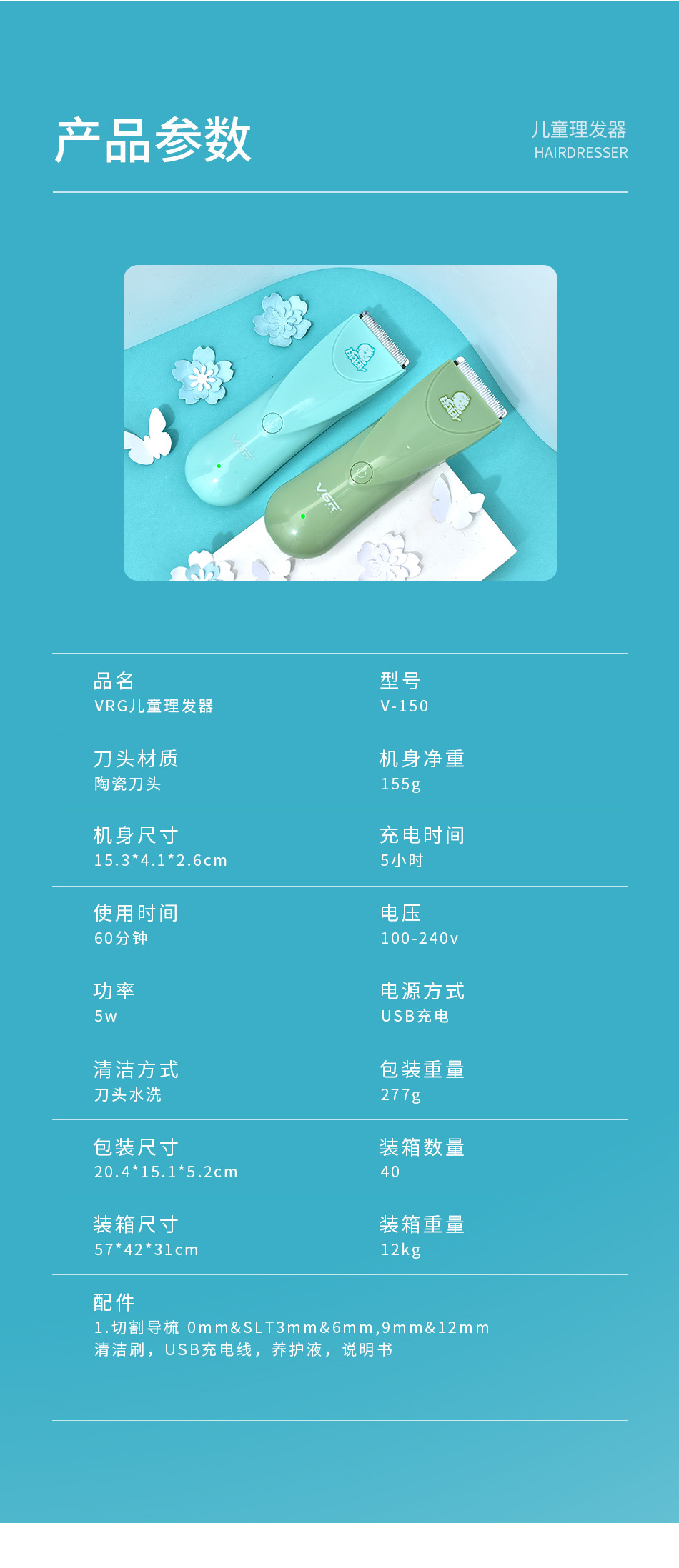 Vgr150 empujador eléctrico para bebés transfronterizo pequeño cortador de pelo cerámica cabeza de cuchillo eléctrico cortador de pelo para niños artefacto doméstico