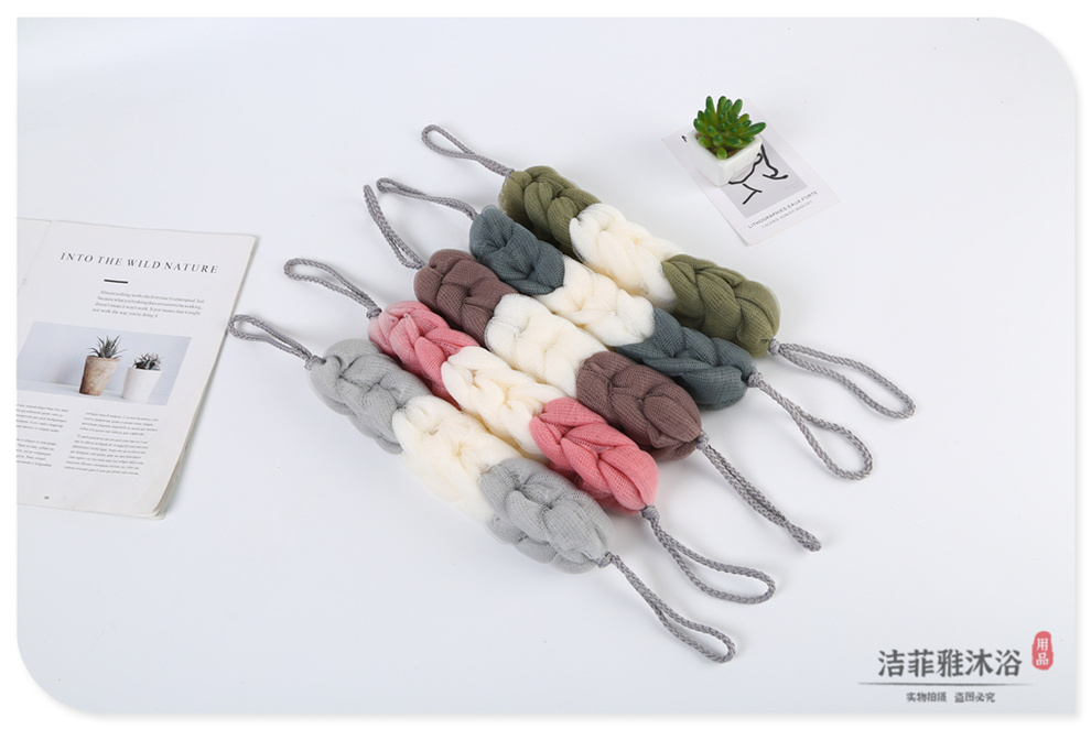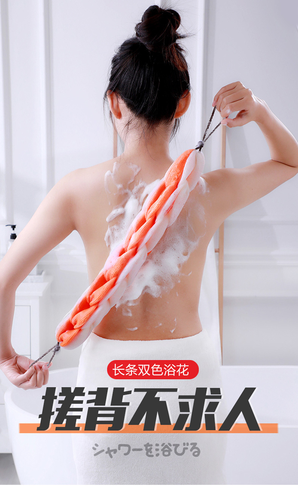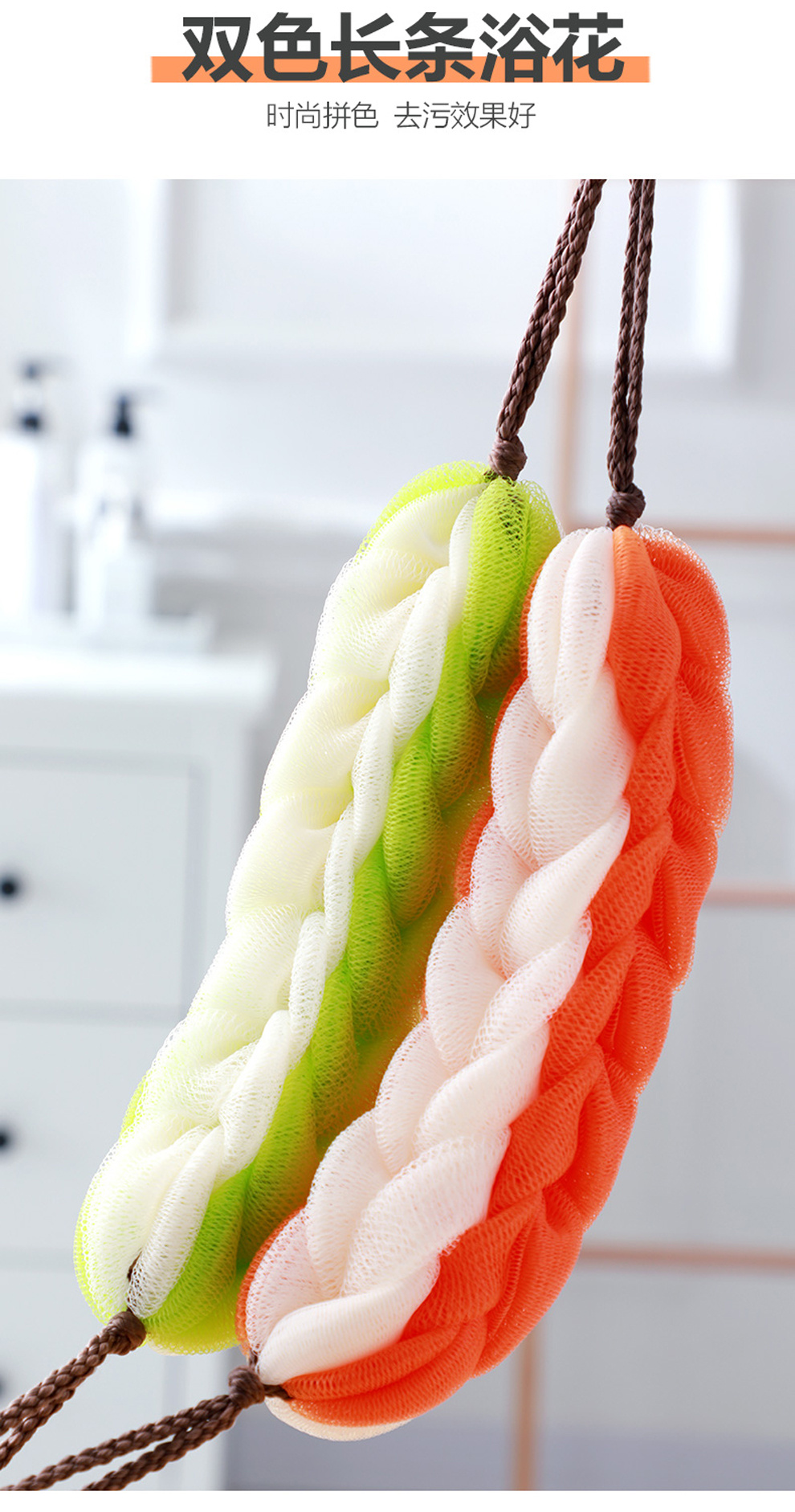 Bola de baño multicolor, bola de baño de tiras largas, bola de ducha de flores de baño, bola de ducha grande, toalla de baño, toalla de baño, espalda, gasa de ducha