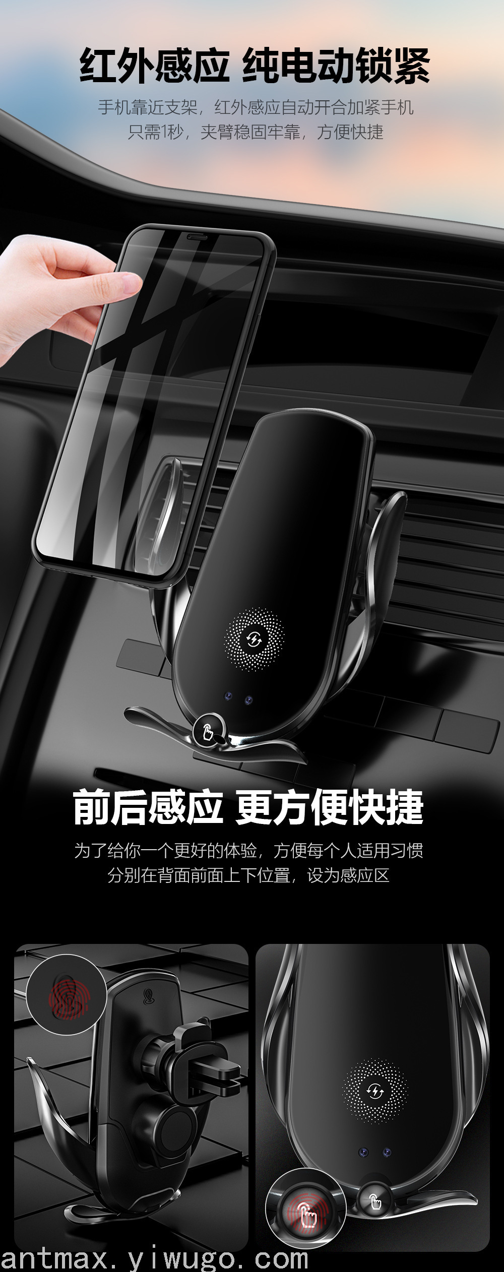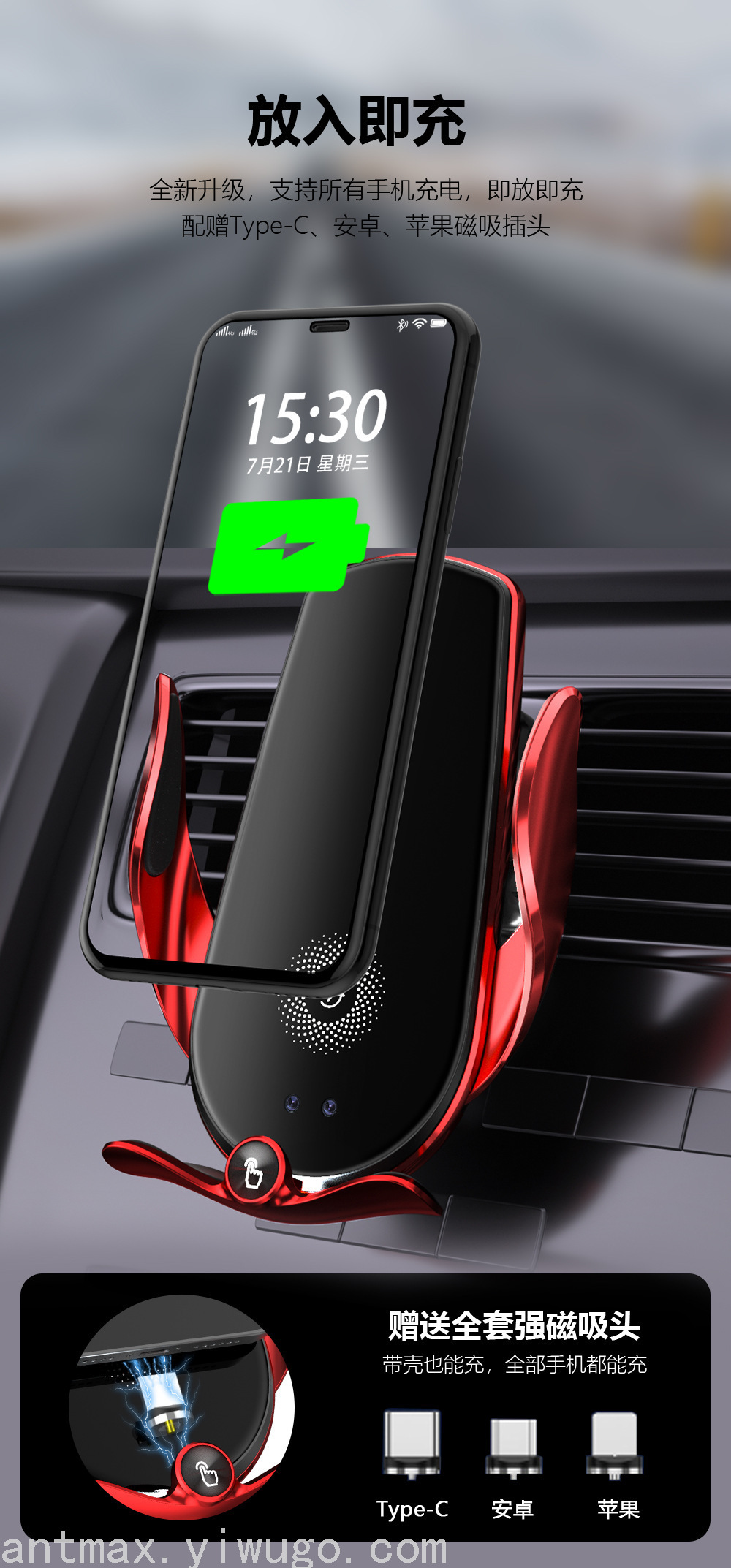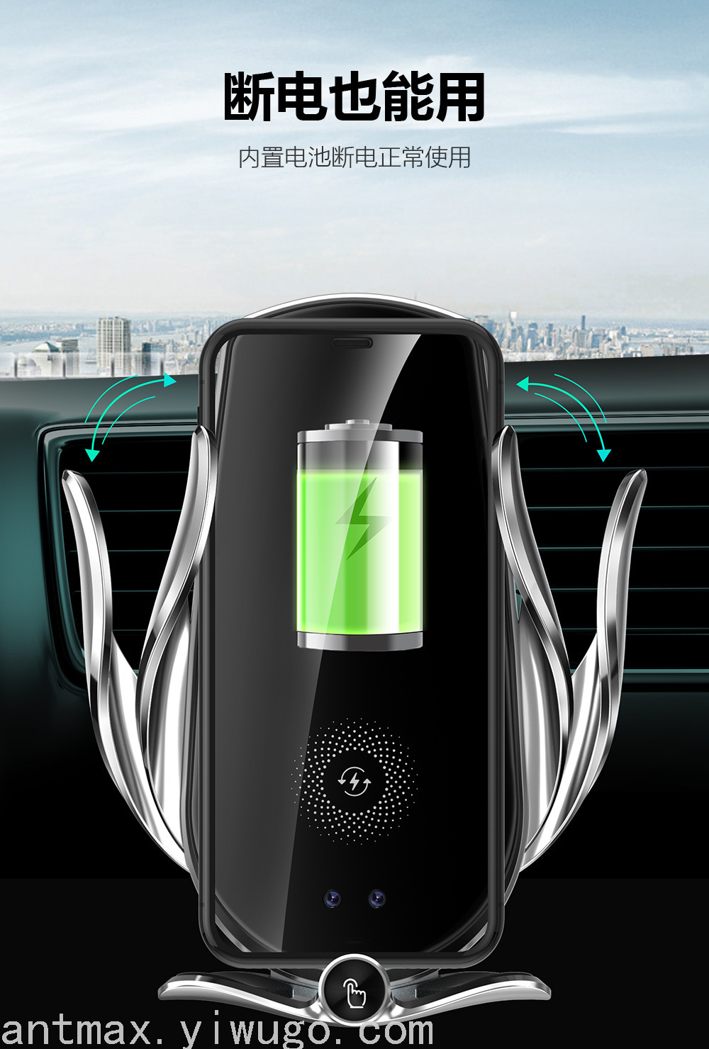 注:车载手机支架无线充电器不能直接插汽车自带USB口供电,汽车在启动瞬间会产生过高电压,插汽车自带USB口不能起到电压保护 会损伤无线充支架,汽车自带USB口还会读取无线充支架数据造成充电不流畅,需要用汽车点烟口USB车充为无线充支架供电!