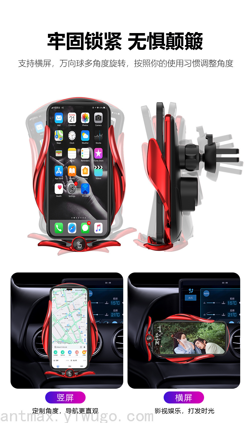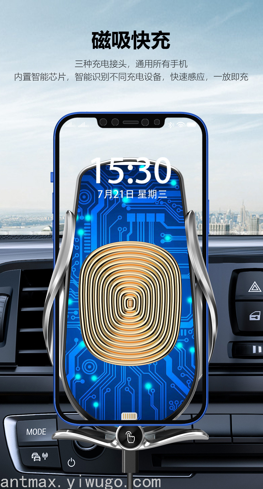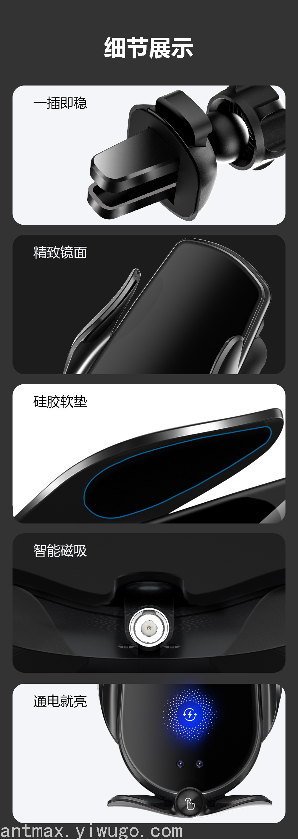 注:车载手机支架无线充电器不能直接插汽车自带USB口供电,汽车在启动瞬间会产生过高电压,插汽车自带USB口不能起到电压保护 会损伤无线充支架,汽车自带USB口还会读取无线充支架数据造成充电不流畅,需要用汽车点烟口USB车充为无线充支架供电!
