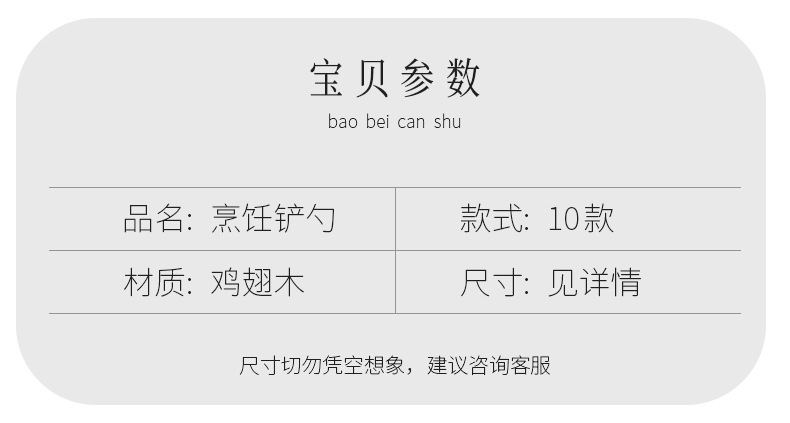Grandes almacenes diarios sin pintura, alitas de pollo, palas de madera, palas de olla no pegajosas, wok, palas de verduras, vajilla, utensilios de cocina, juegos al por mayor