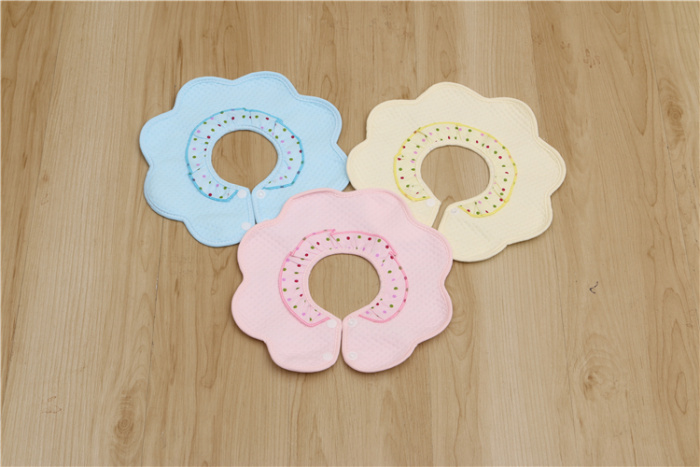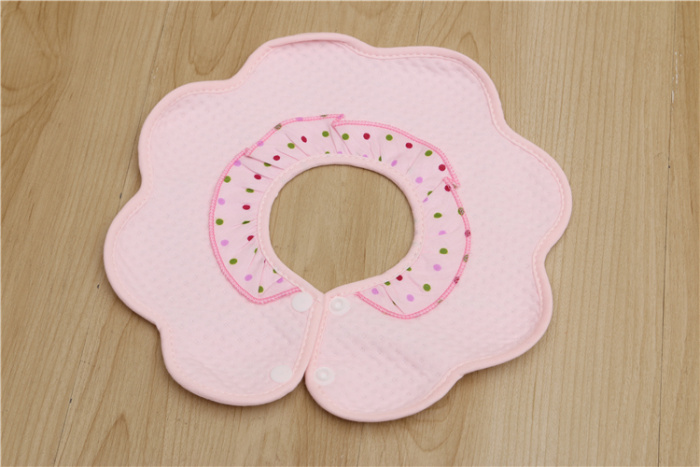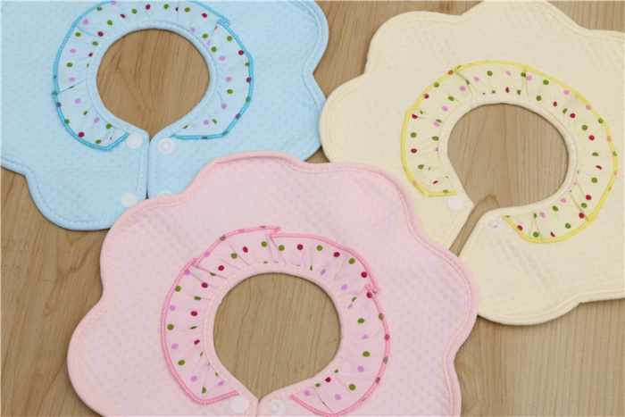 花边圆形纯色大八角围嘴 宝宝餐用围嘴