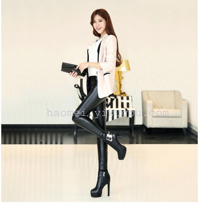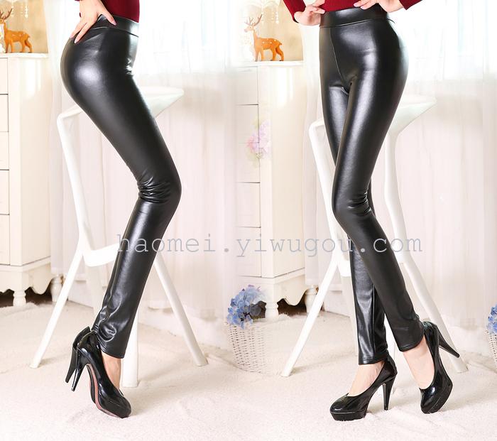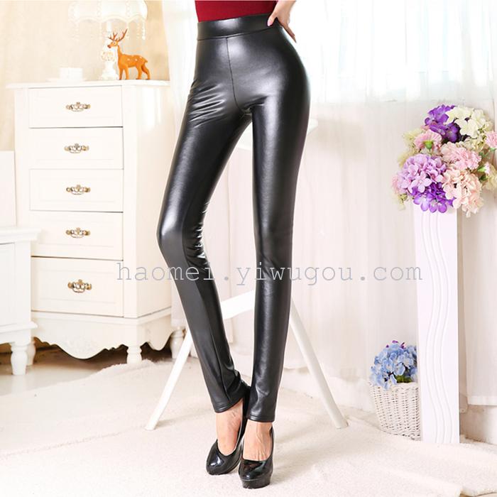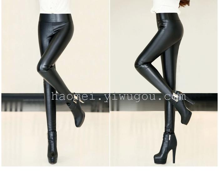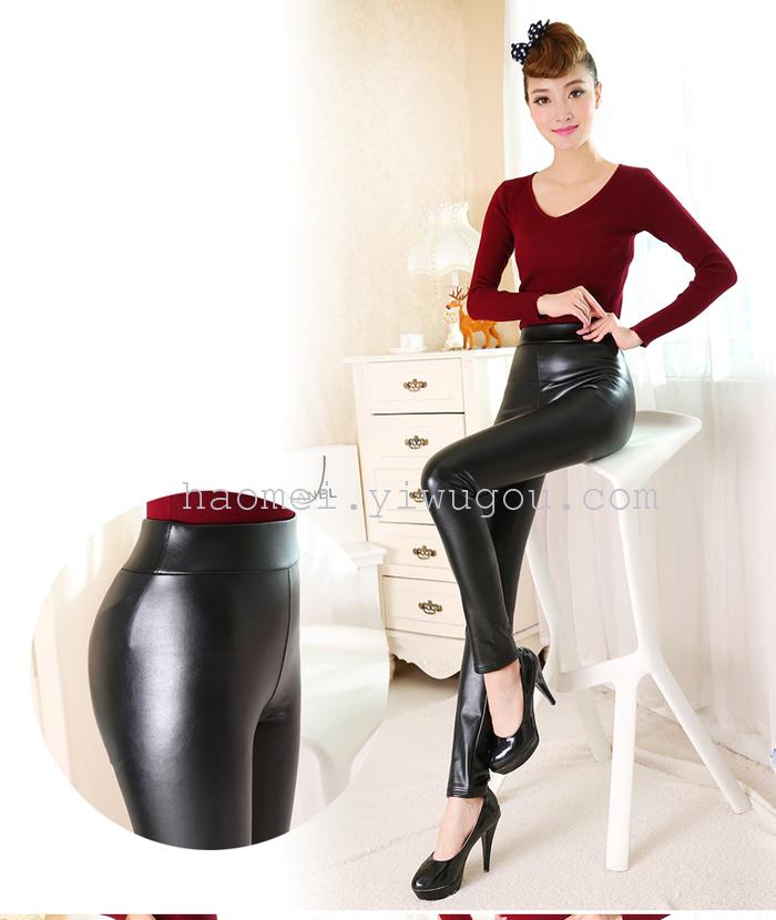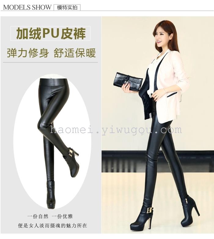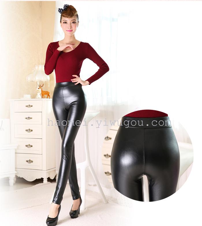 Ropa de magnesio de lujo mujer pantalones de cuero Pu ajustados pantalones de pies pequeños más pantalones de abrigo de terciopelo moda pantalones de cuero ajustados mujer