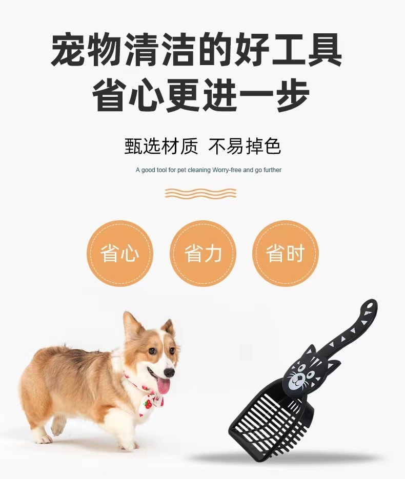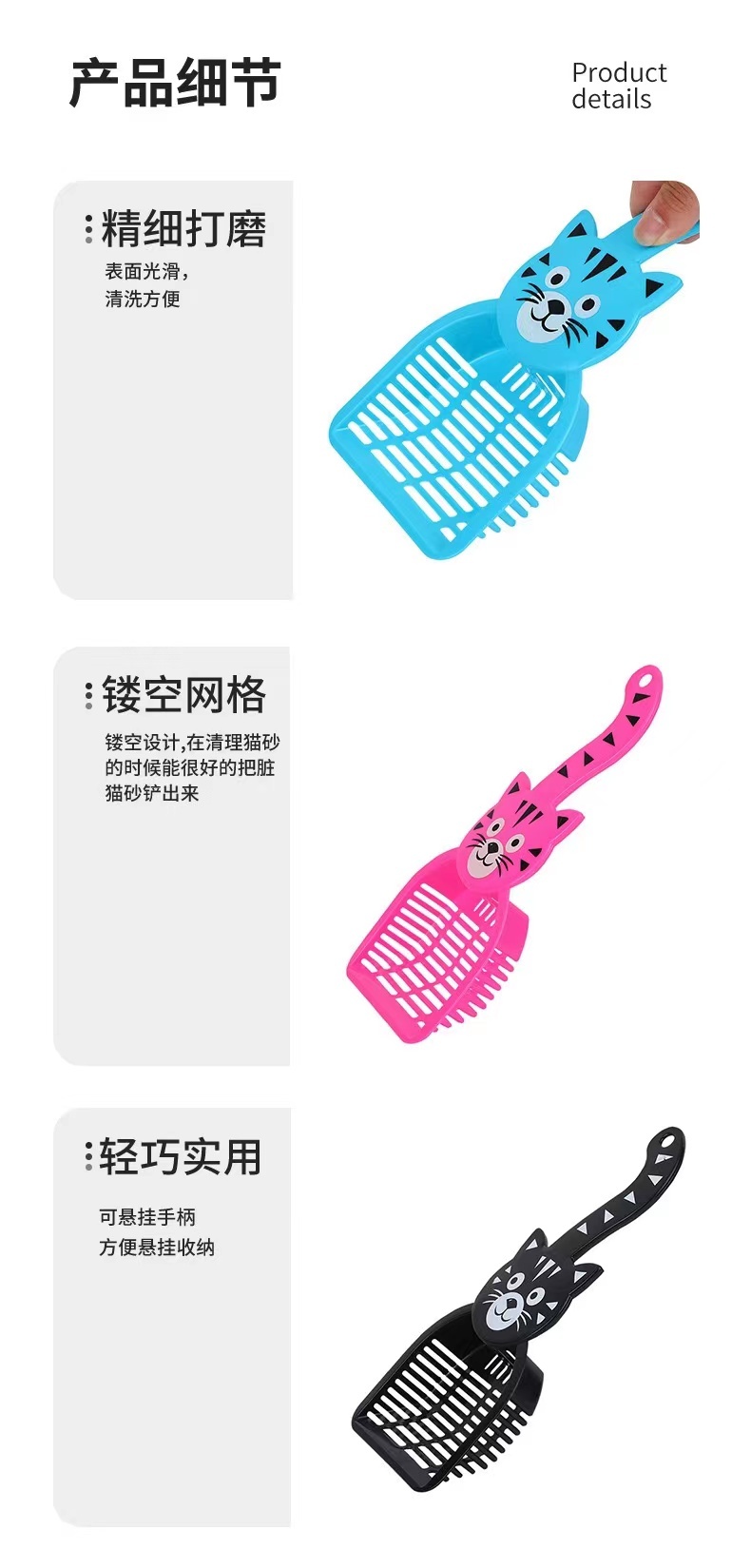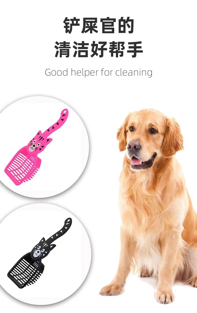 Fabricante mayorista de dibujos animados huecos palas de arena para gatos de plástico para perros domésticos productos de limpieza para mascotas palas para mascotas