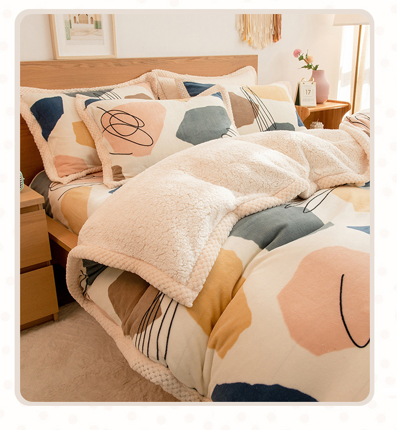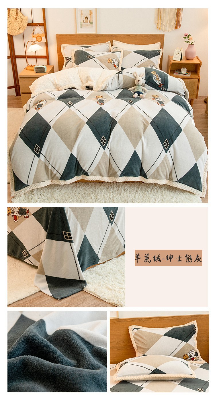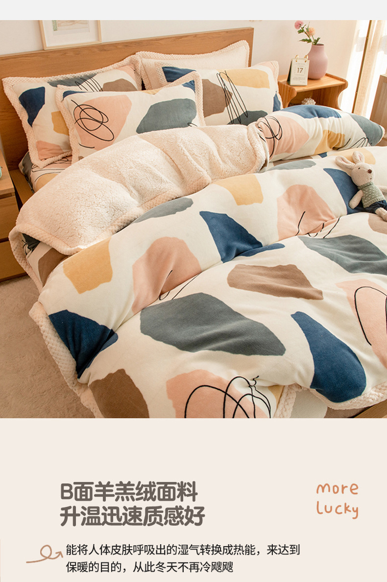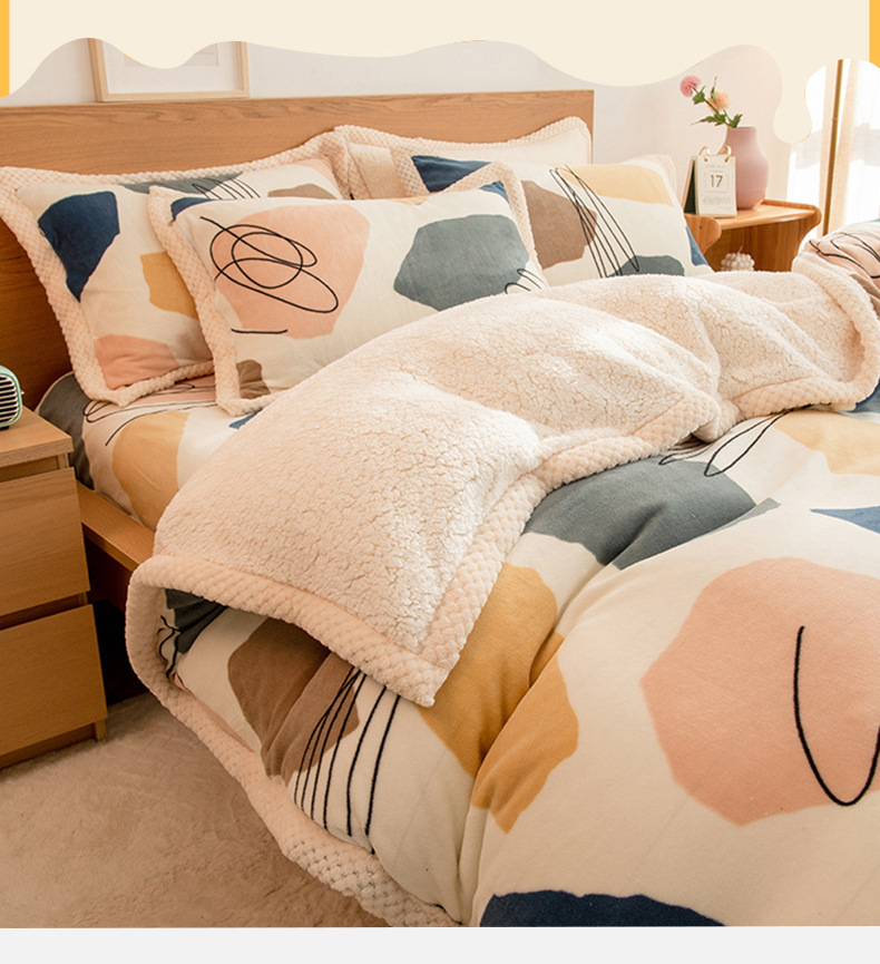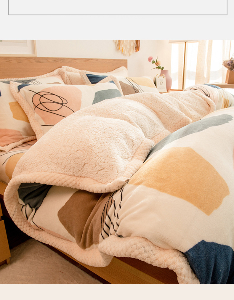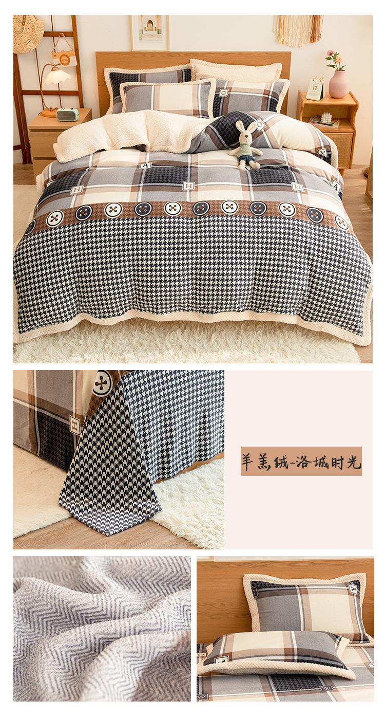 Nuevo juego de cuatro piezas de terciopelo de cordero de leche engrosada en otoño e invierno, sábanas gruesas y cálidas, edredones y ropa de cama de terciopelo de doble cara