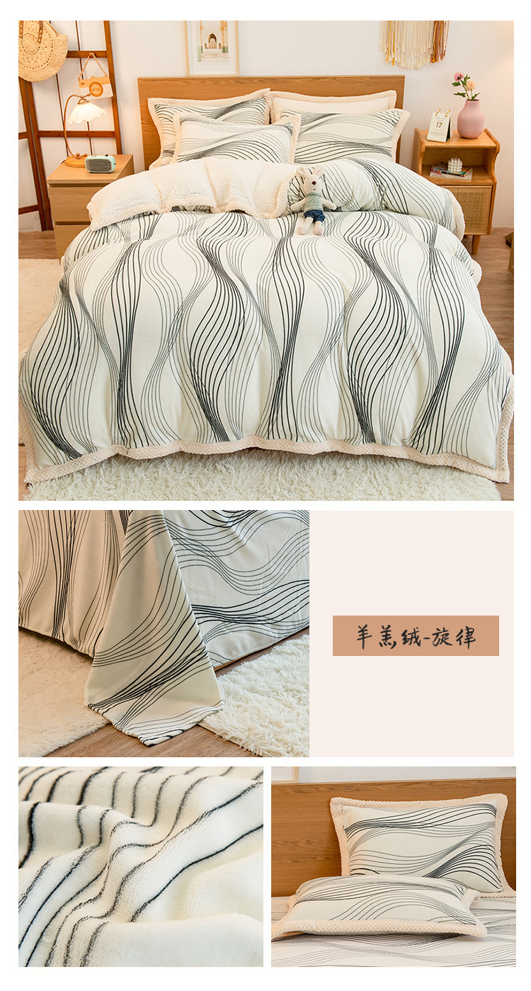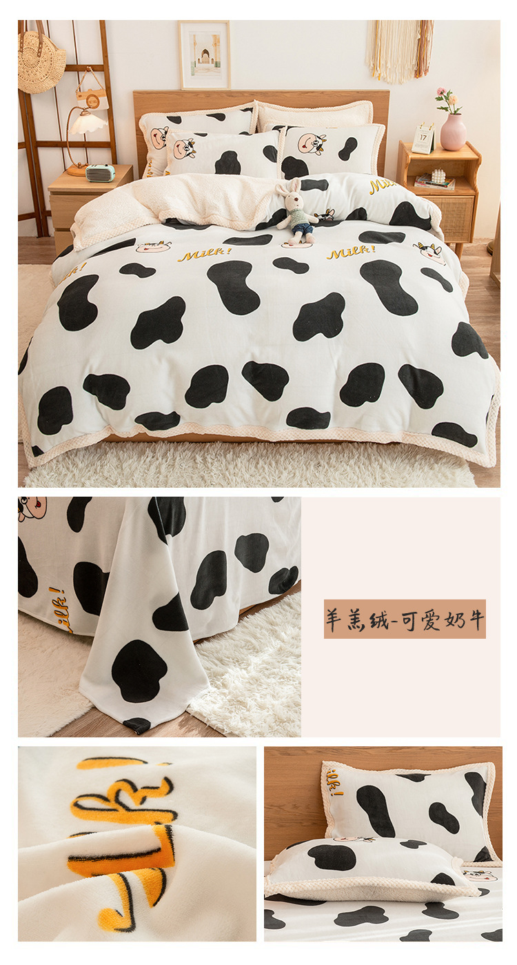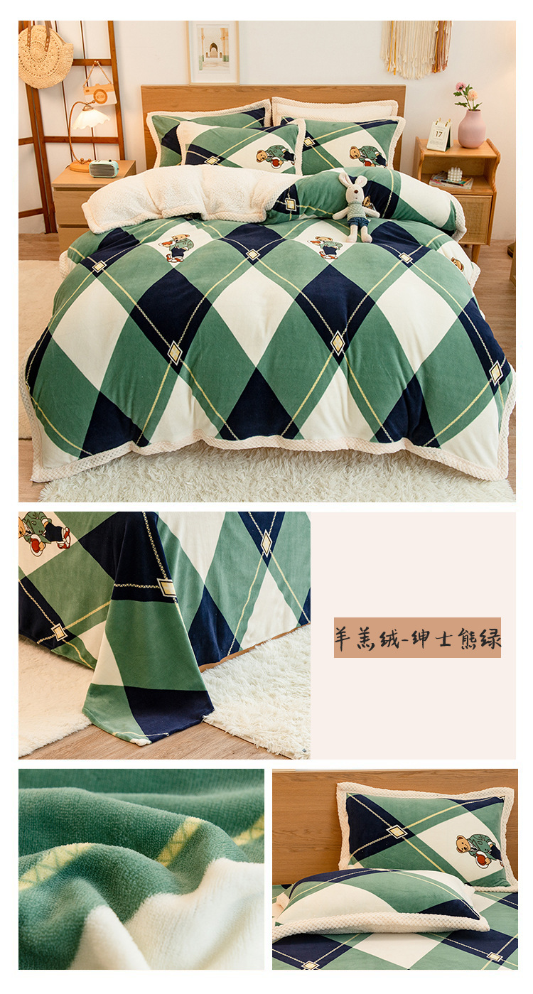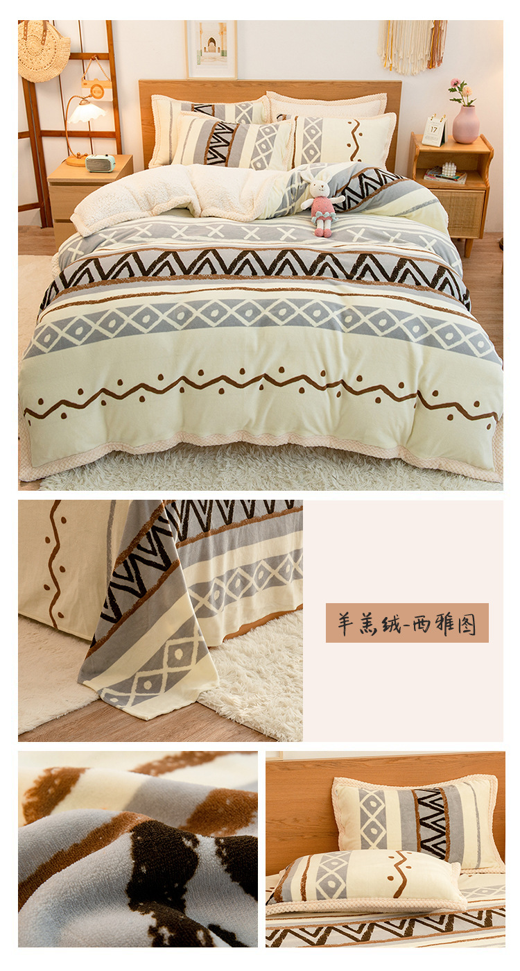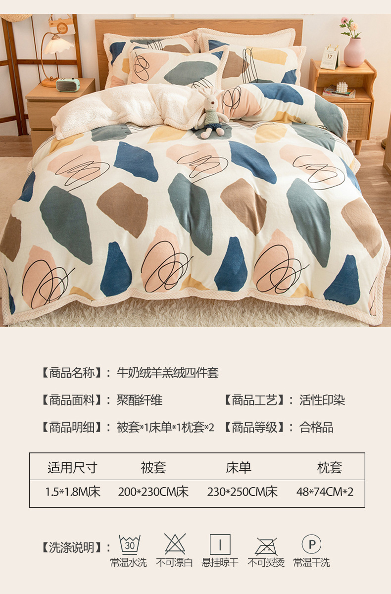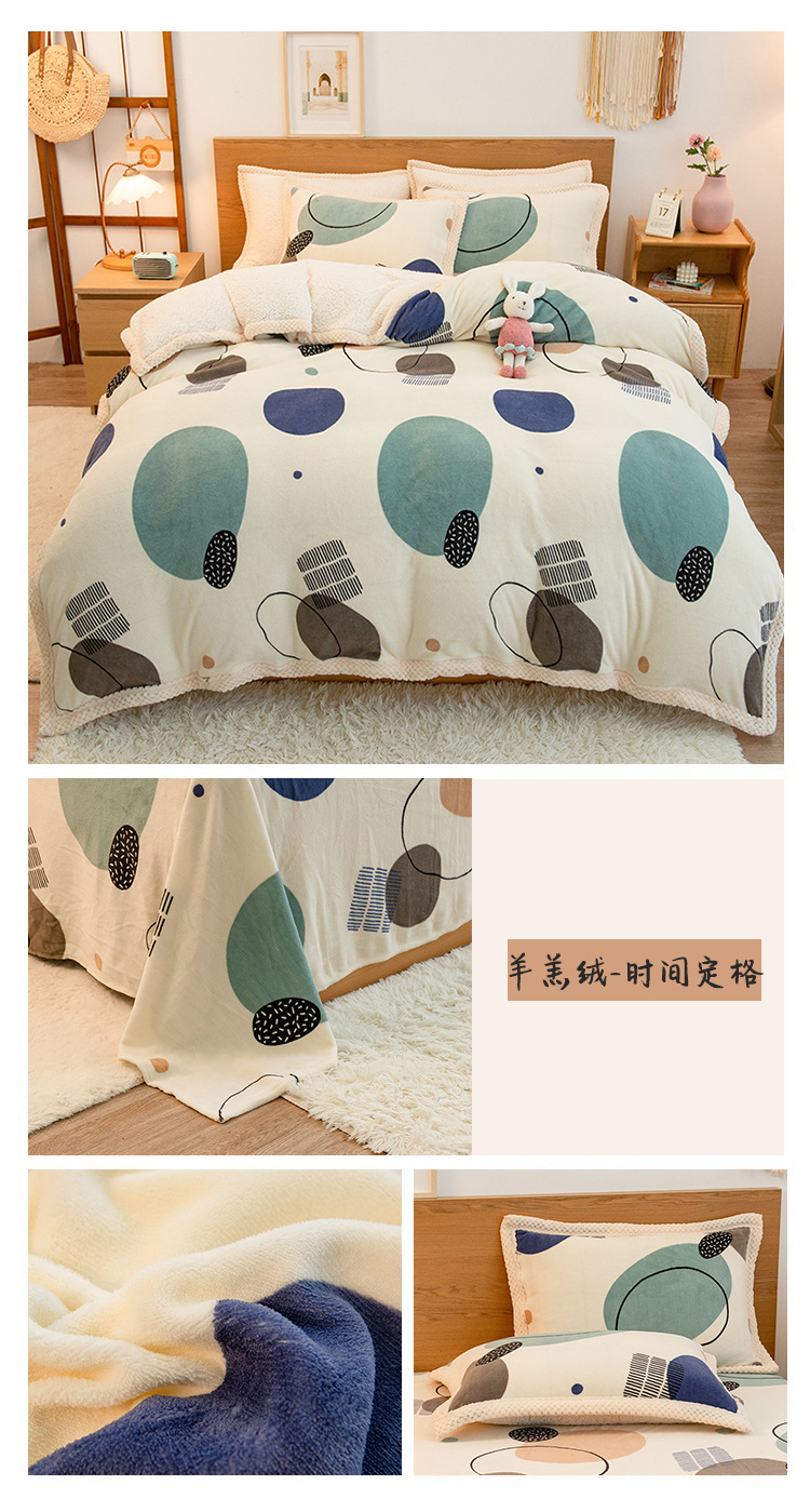 Nuevo juego de cuatro piezas de terciopelo de cordero de leche engrosada en otoño e invierno, sábanas gruesas y cálidas, edredones y ropa de cama de terciopelo de doble cara