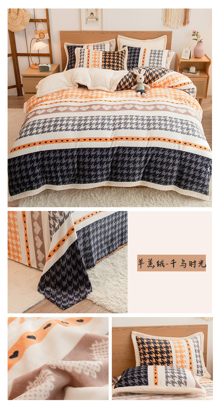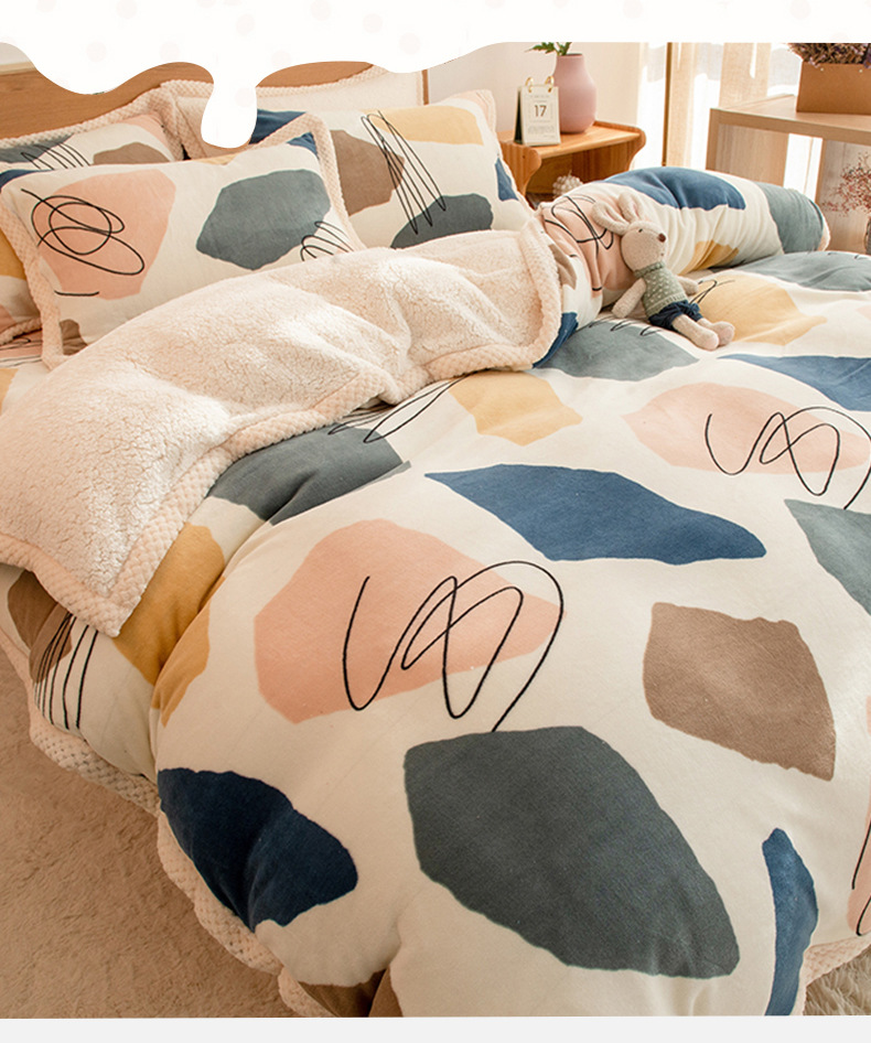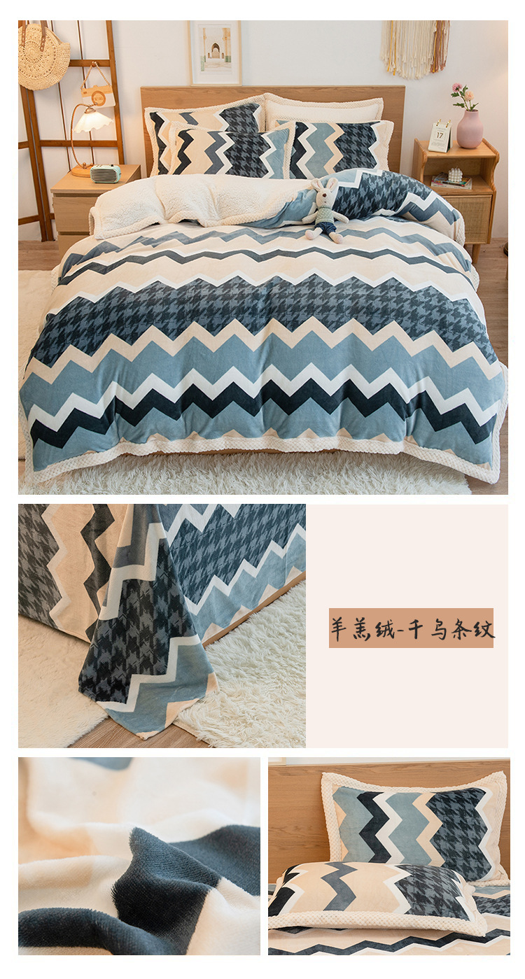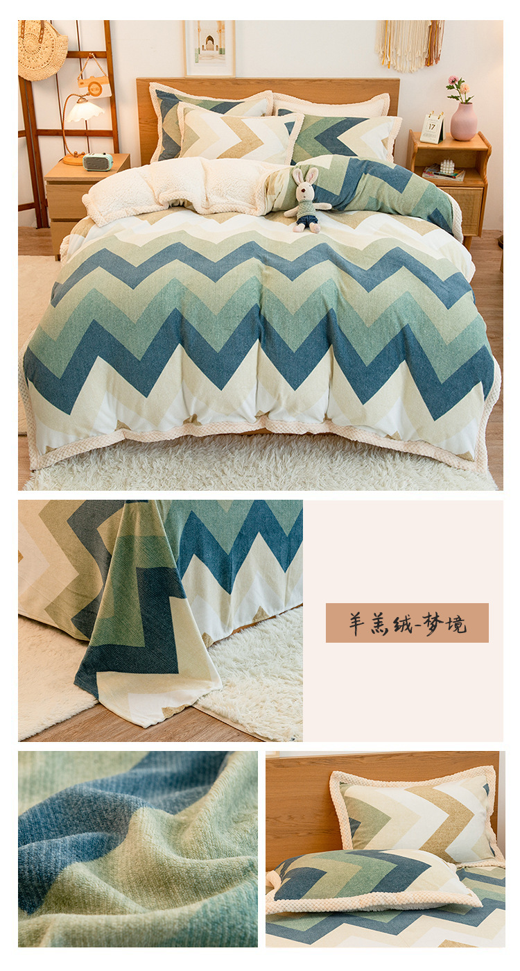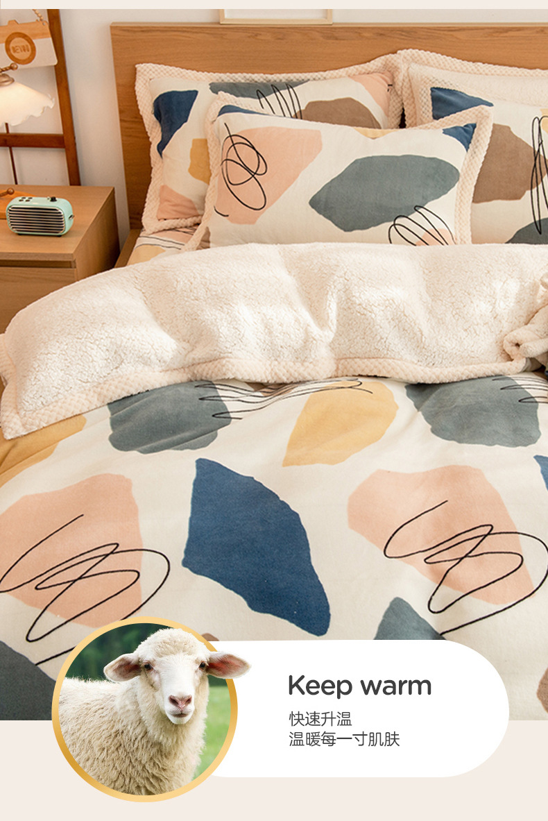 Nuevo juego de cuatro piezas de terciopelo de cordero de leche engrosada en otoño e invierno, sábanas gruesas y cálidas, edredones y ropa de cama de terciopelo de doble cara