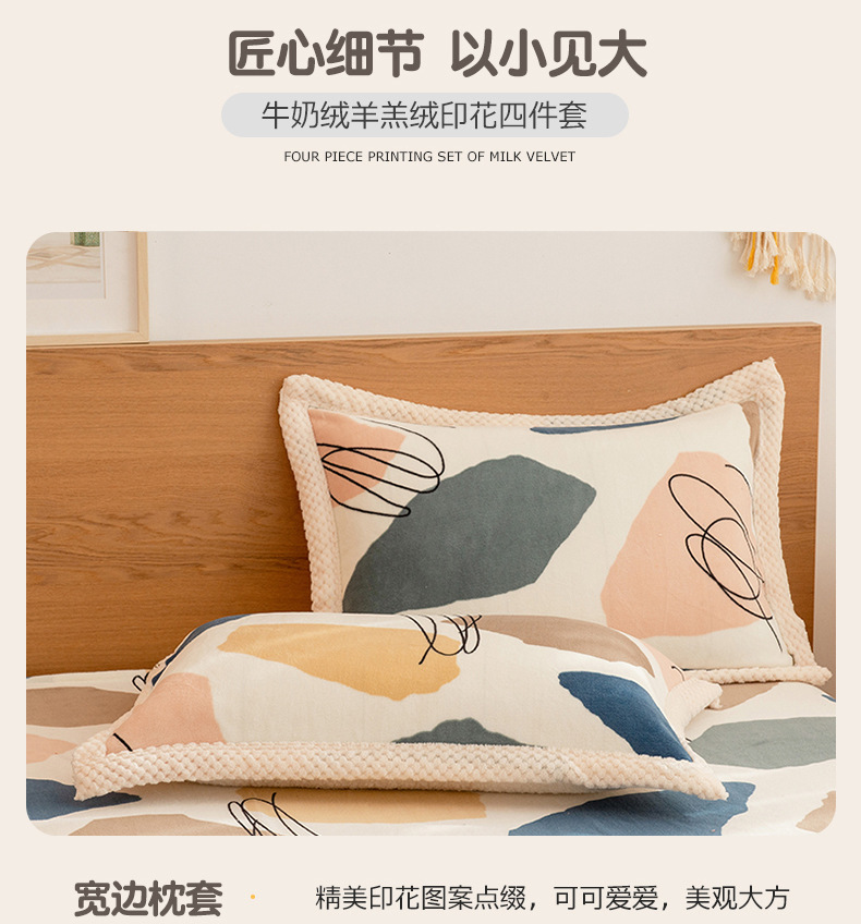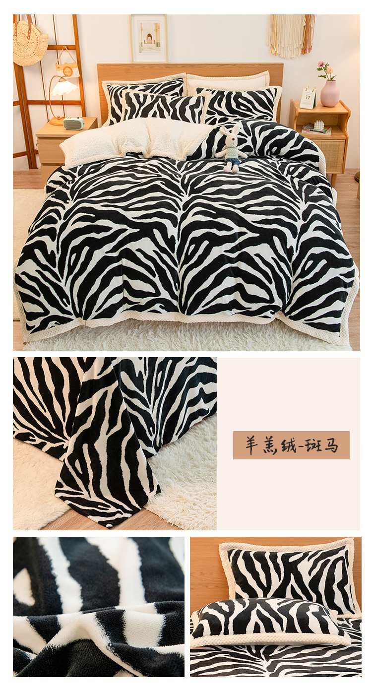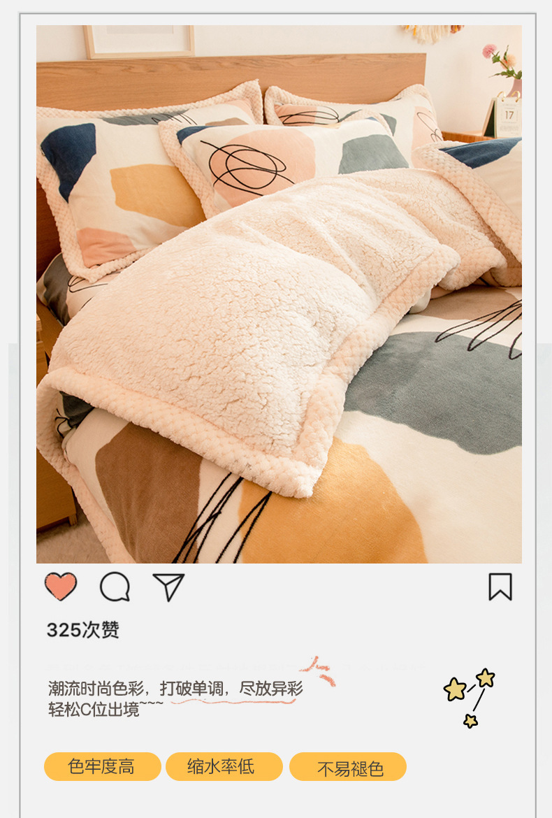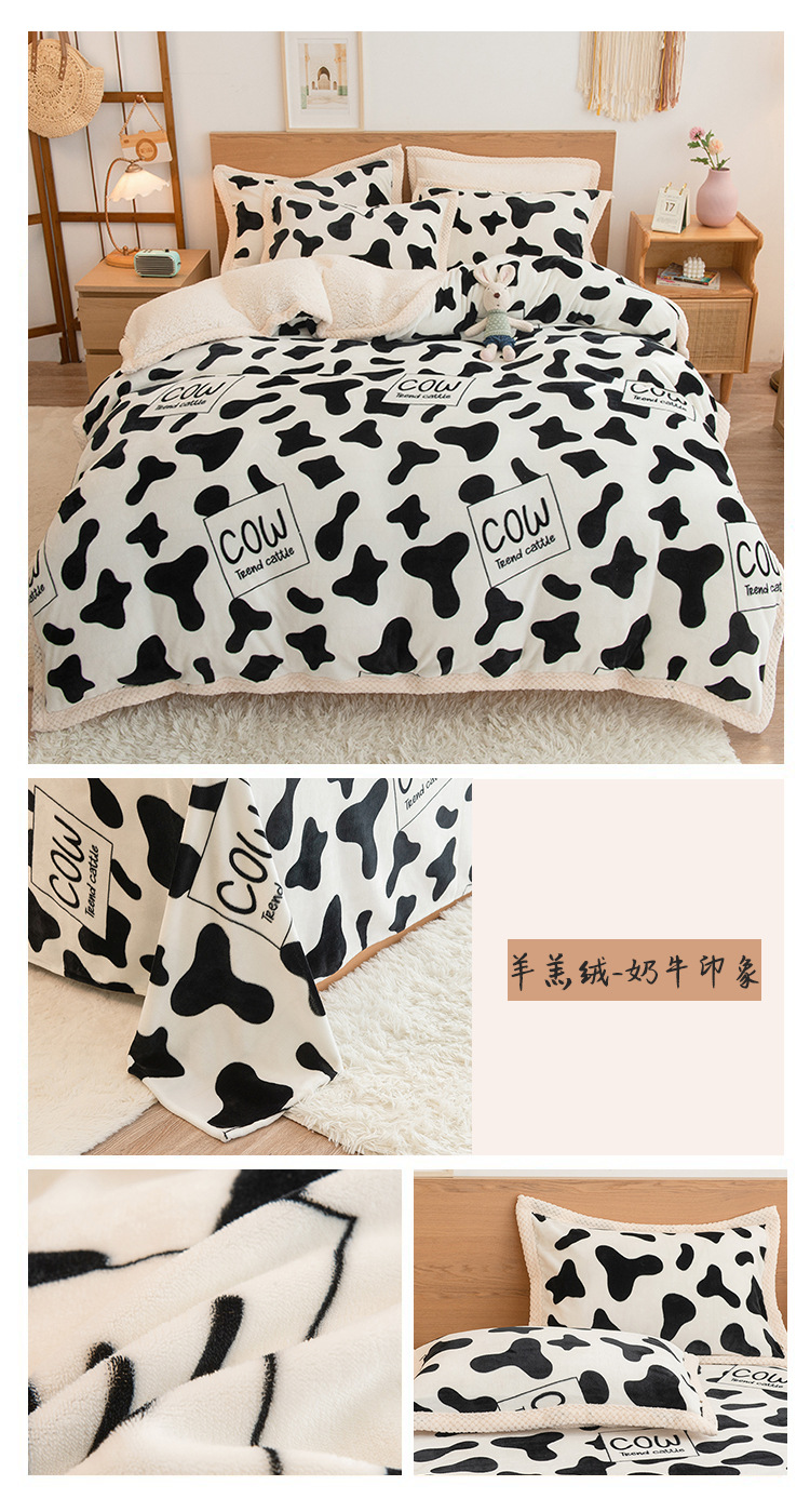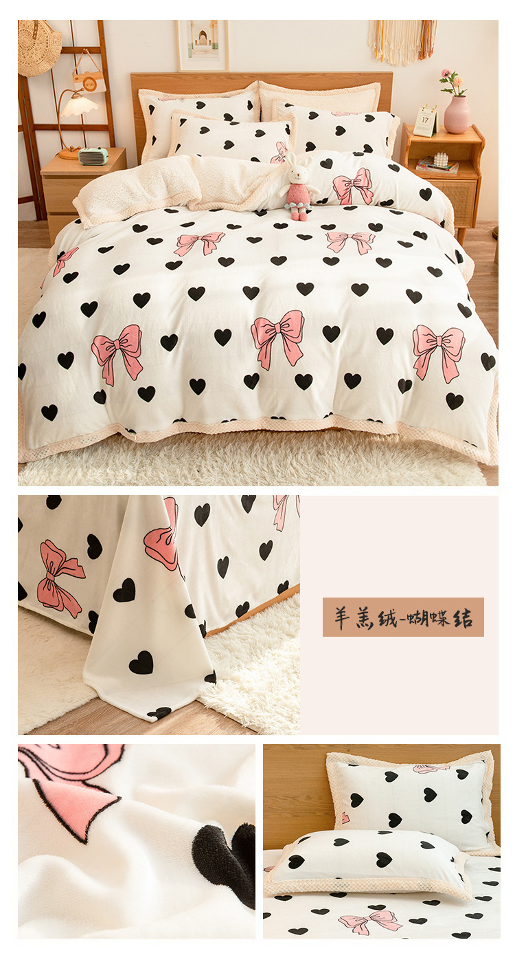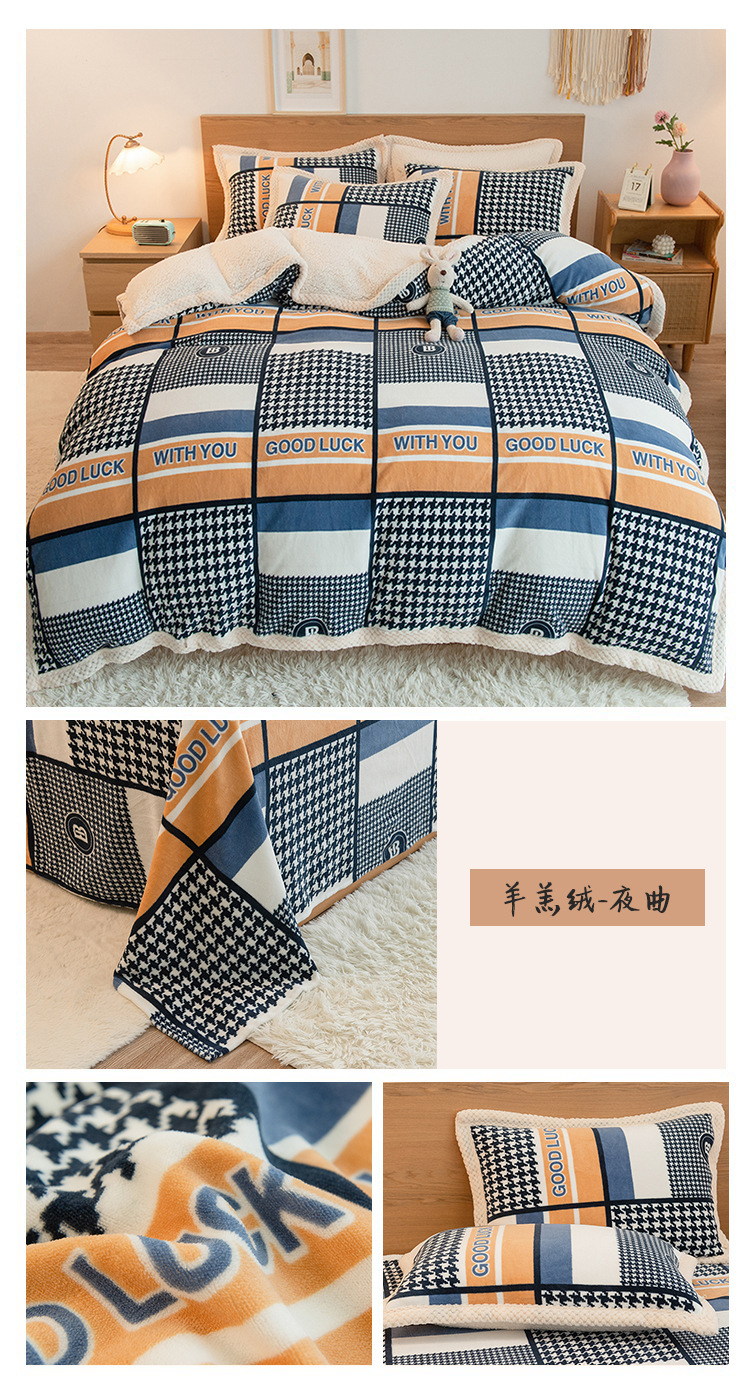 Nuevo juego de cuatro piezas de terciopelo de cordero de leche engrosada en otoño e invierno, sábanas gruesas y cálidas, edredones y ropa de cama de terciopelo de doble cara