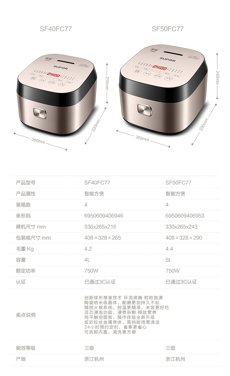 Supor / supor sf40fc77 / 99 Olla arrocera de Olla arrocera de bola inteligente 50fc77 Olla arrocera de arroz multifuncional