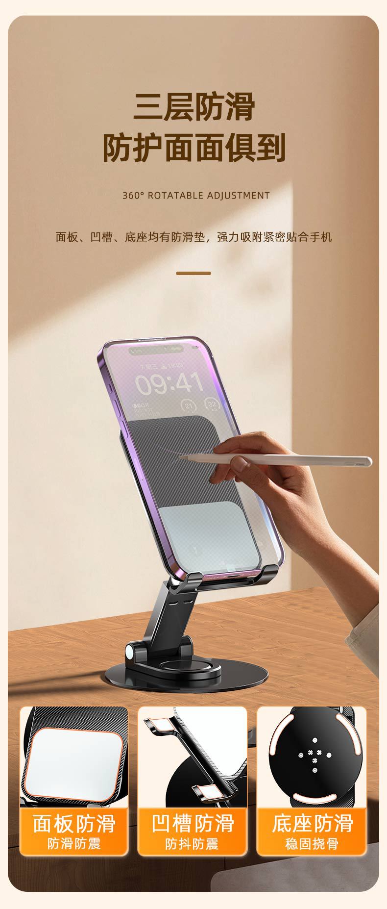 Soporte del teléfono móvil, Mesa de aleación de aluminio, soporte de la tableta de 360 grados, soporte de la oficina, persecución de dramas en vivo, plegado portátil