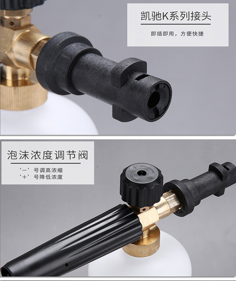 Pistola de agua pa regadera de espuma de lavadora de automóviles de alta presión gran ángulo ajustable boca grande núcleo de cobre para conectar rápidamente la regadera de espuma