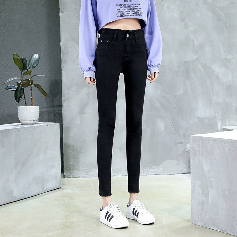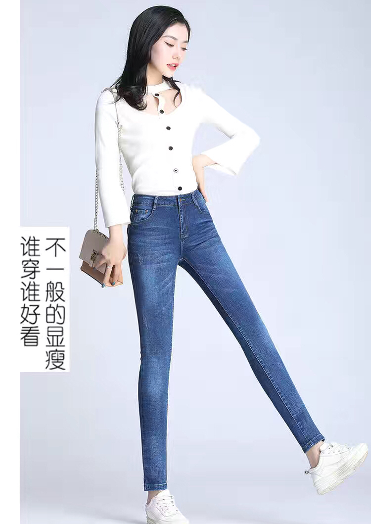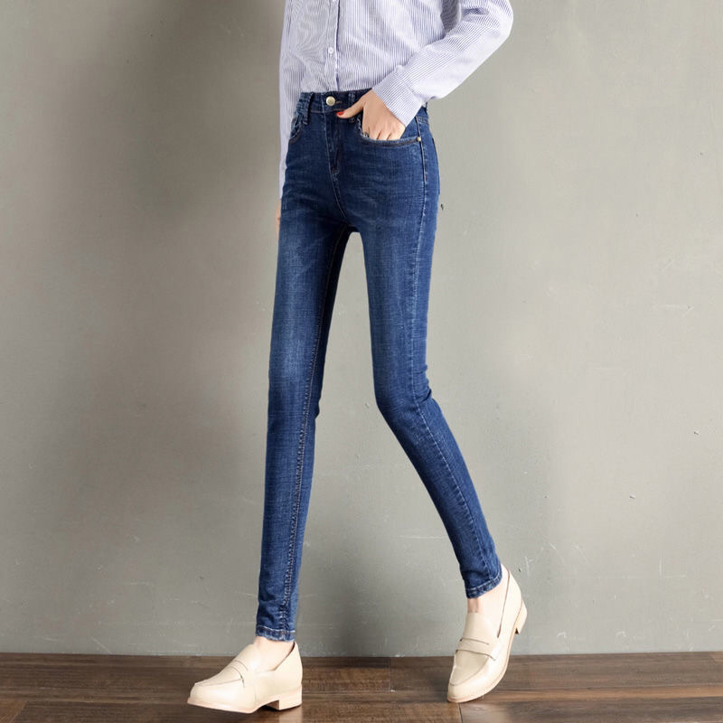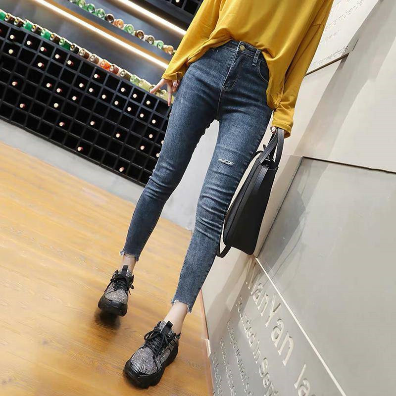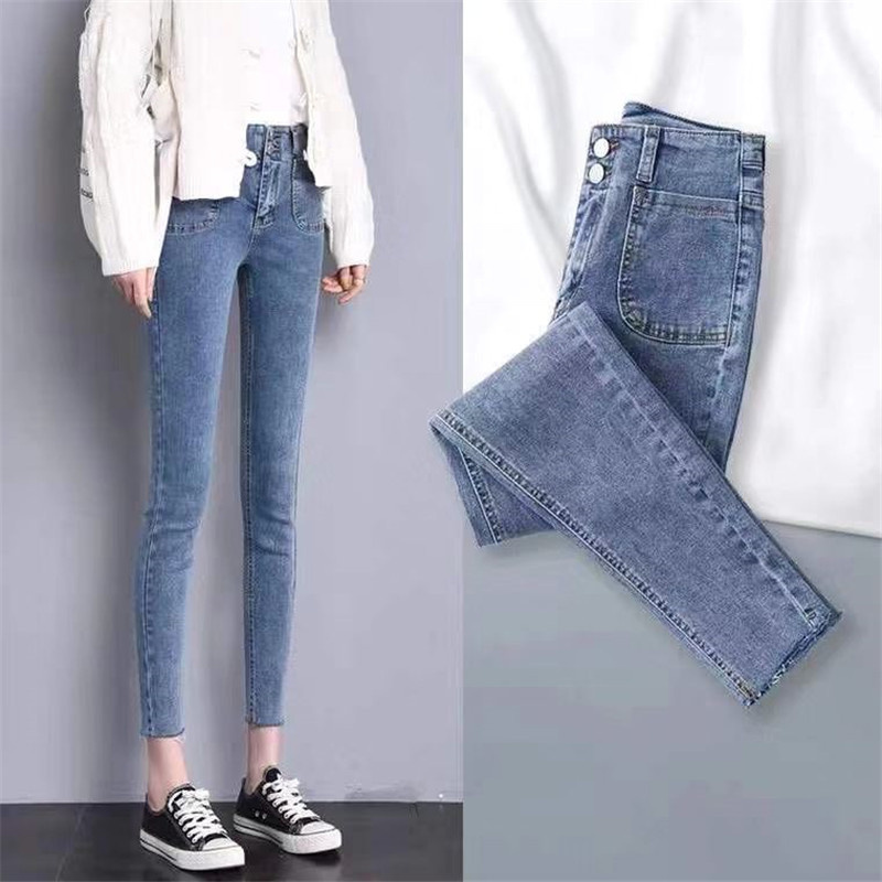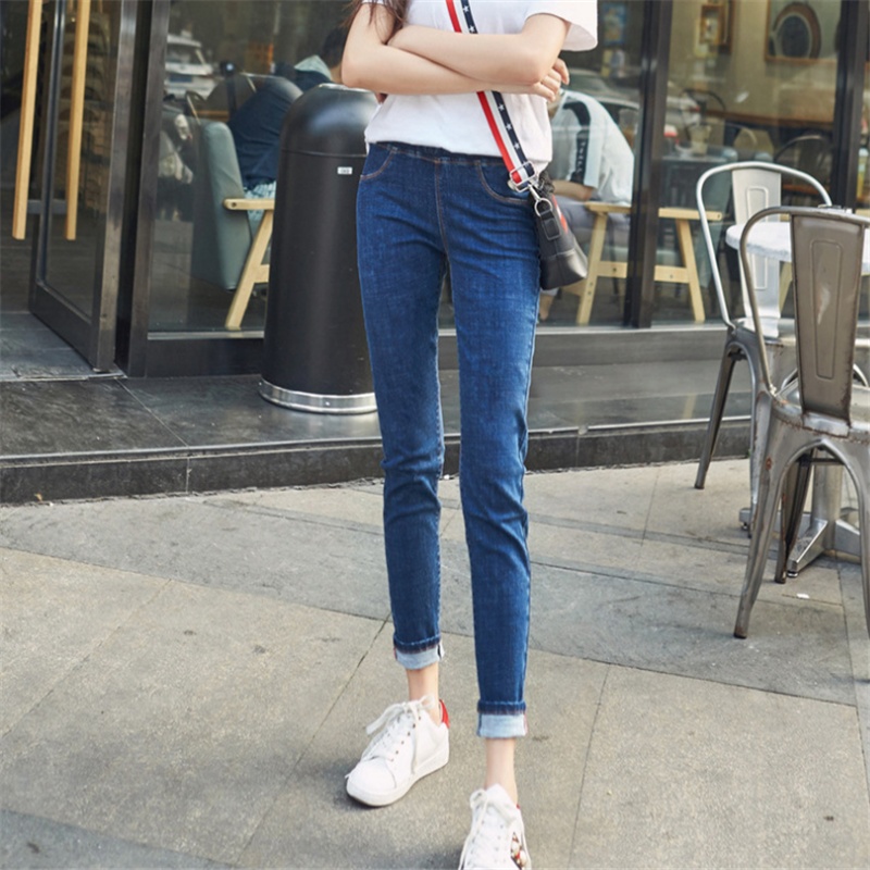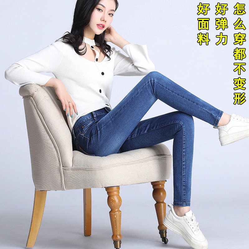 Ropa de mujer, pantalones de pies pequeños, jeans de cintura alta, elásticos, delgados y delgados, pantalones de lápiz al por mayor, todas las tendencias de ocio