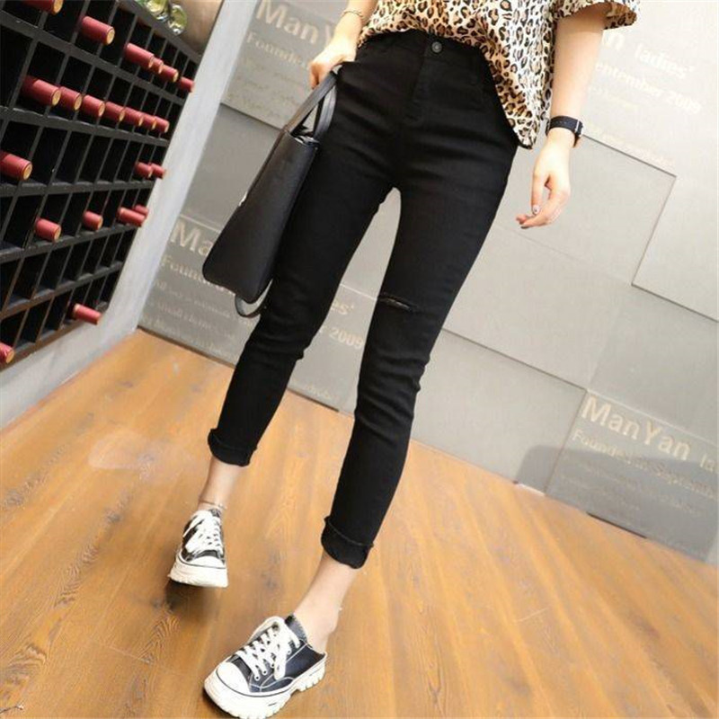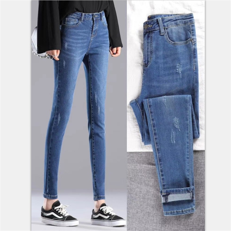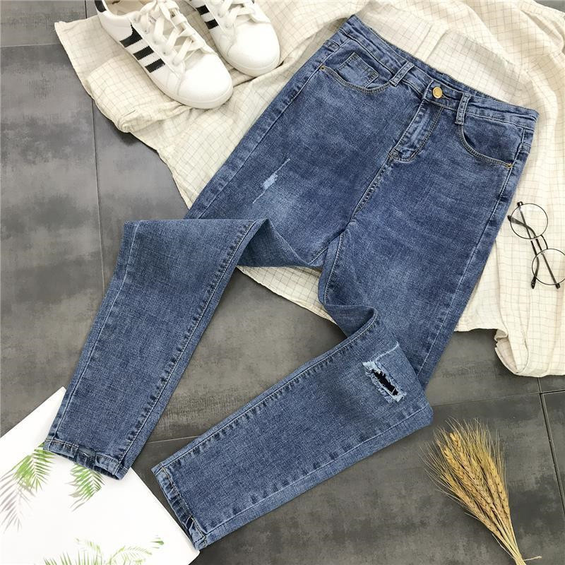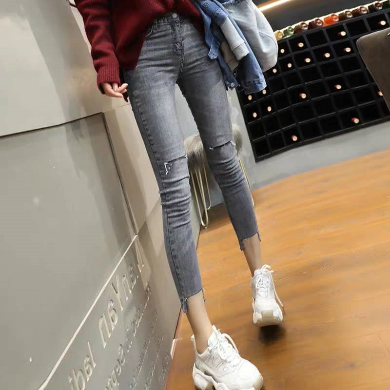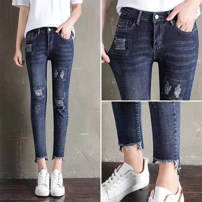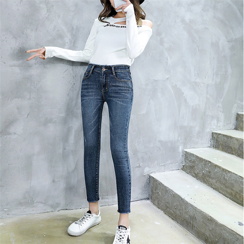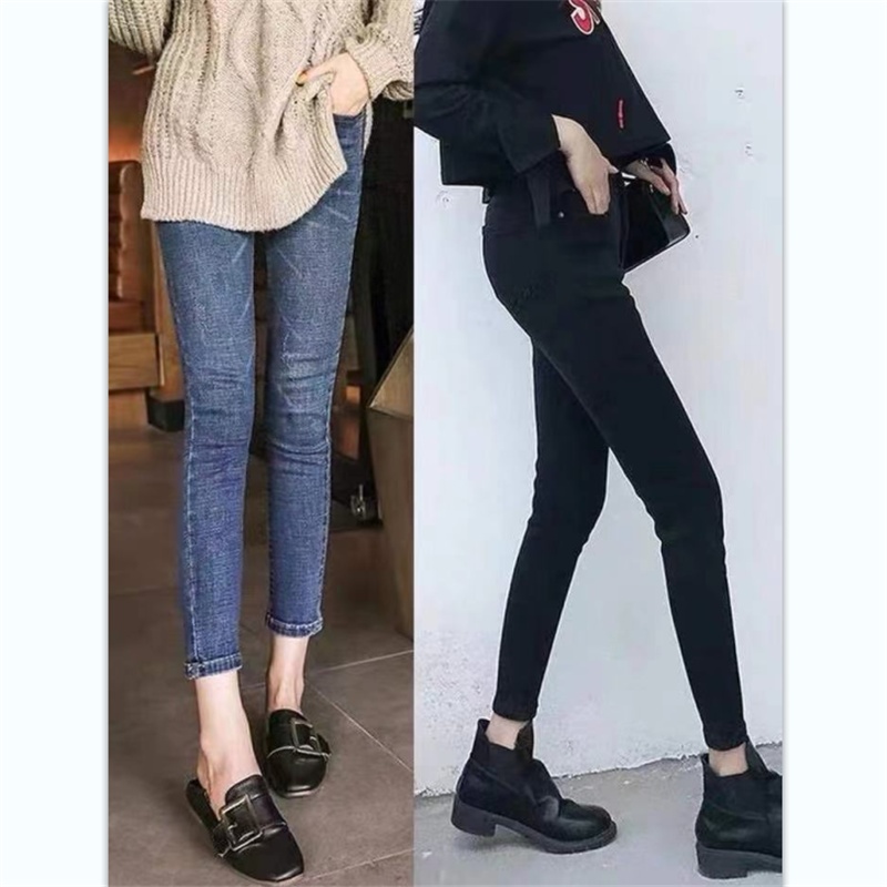 Ropa de mujer, pantalones de pies pequeños, jeans de cintura alta, elásticos, delgados y delgados, pantalones de lápiz al por mayor, todas las tendencias de ocio