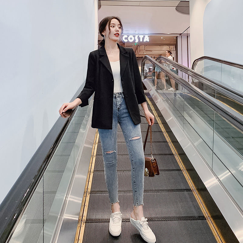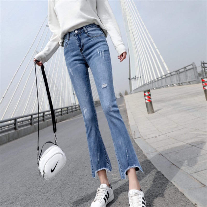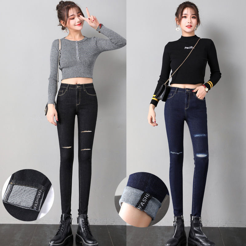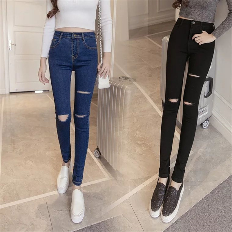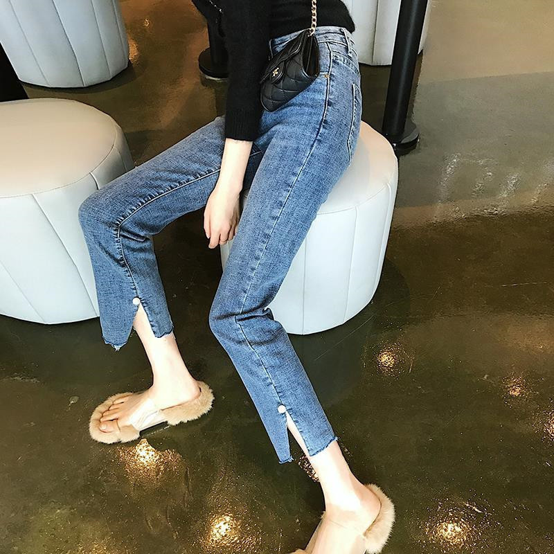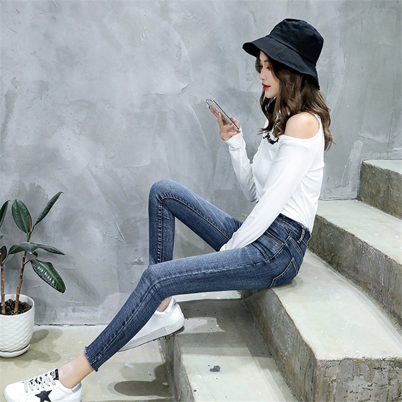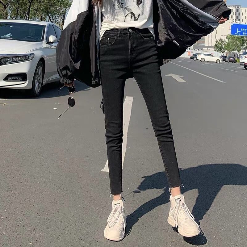 Ropa de mujer, pantalones de pies pequeños, jeans de cintura alta, elásticos, delgados y delgados, pantalones de lápiz al por mayor, todas las tendencias de ocio