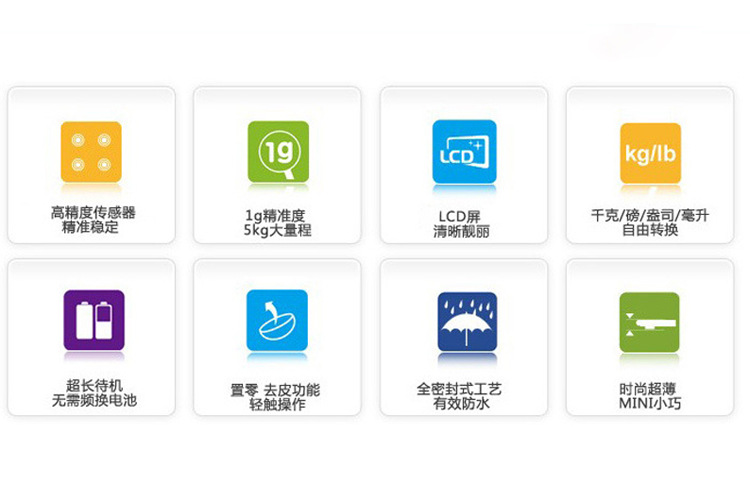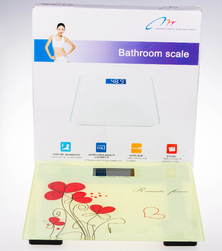 四:注意事项: 不使用时不要再秤面上堆压物品,以免颜色大量消耗,无法正常工作。 称量时双脚尽量靠中间站稳,以免滑到。 人在秤面上平稳站立,以免无法锁定,显示不准确。 不能用力重击秤体。 不要放在有水渍的地方使用,不能用水冲洗,尽量使用干净抹布擦拭。 长期不使用,请将颜色取出。 本产品只适用于家庭称重用,不能用于商业或其他用途。 |