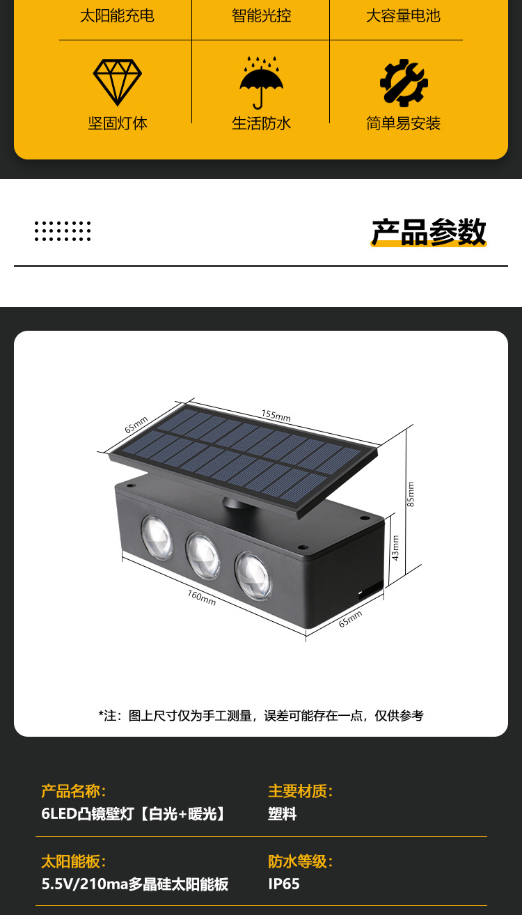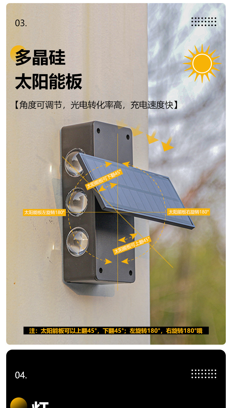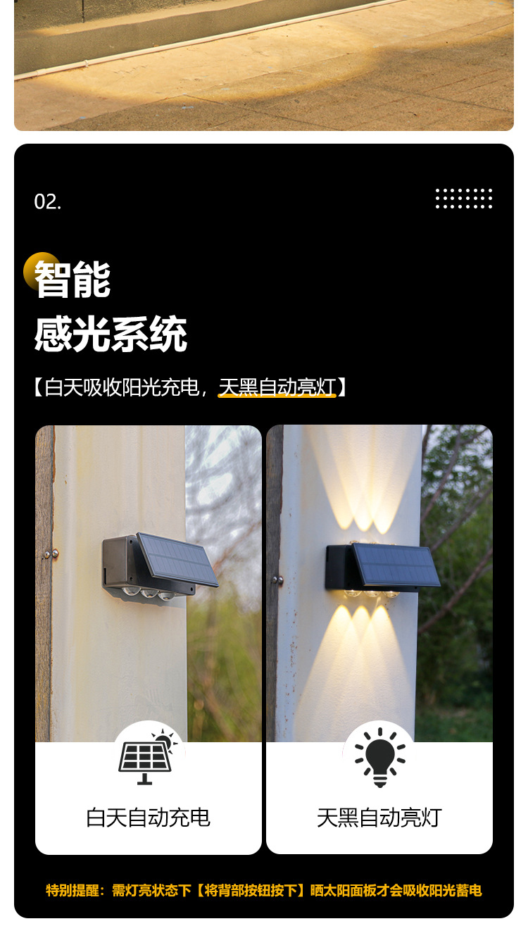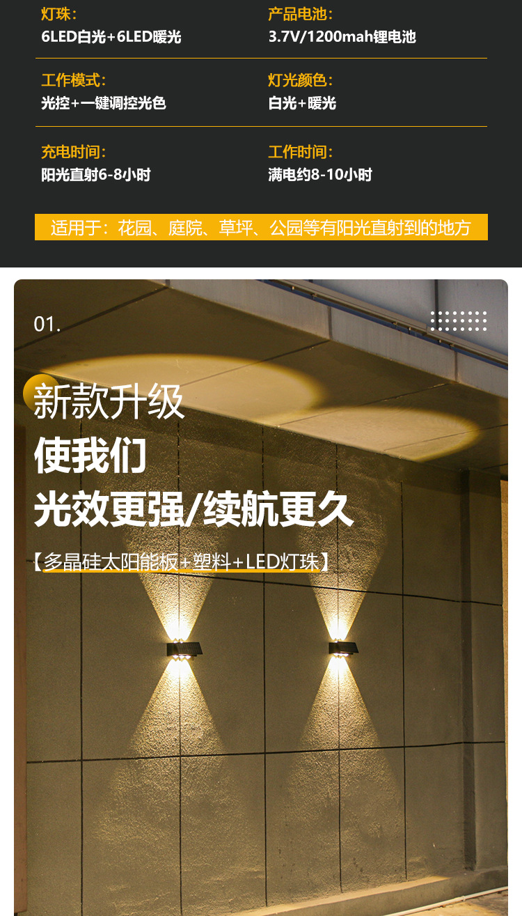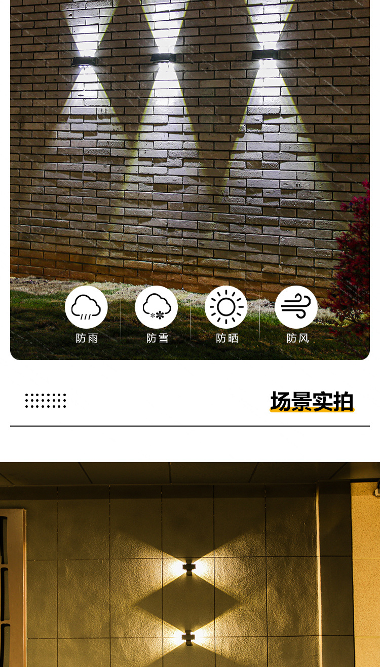 Lámparas de lavado de paredes solares súper brillantes luces de lavado de paredes arriba y abajo lámparas de pared de pared lámparas de decoración de patio de Villa lámparas de proyección impermeable al aire libre