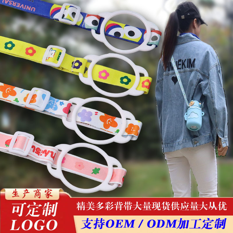 La correa de la tetera portátil lleva oblicuamente una botella de bebida de anillo grande y pequeño de silicona, una botella de agua mineral, una correa de la botella de agua, una taza térmica universal y una suspensión.