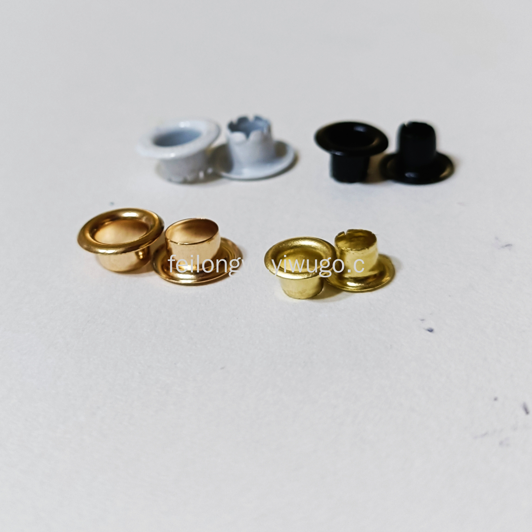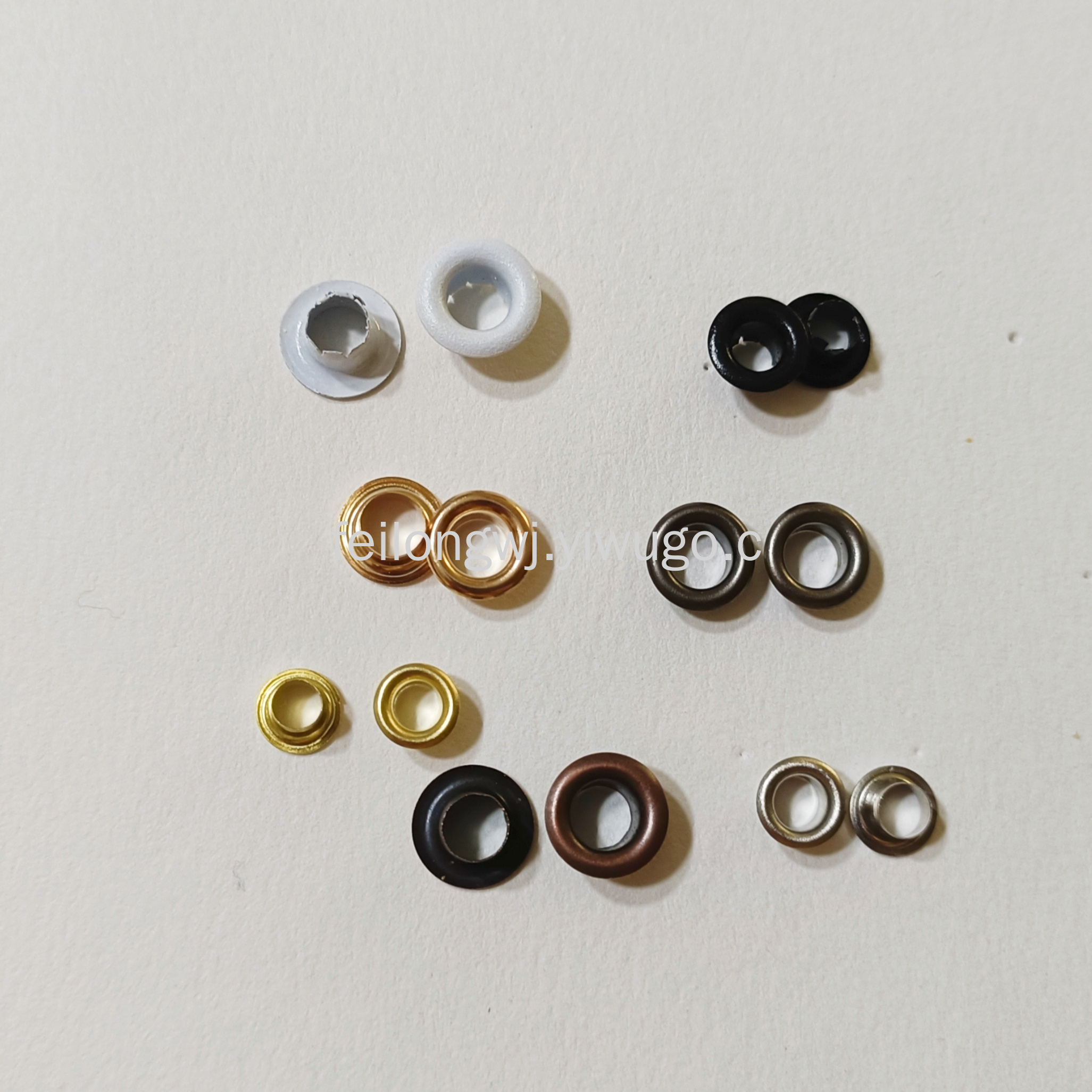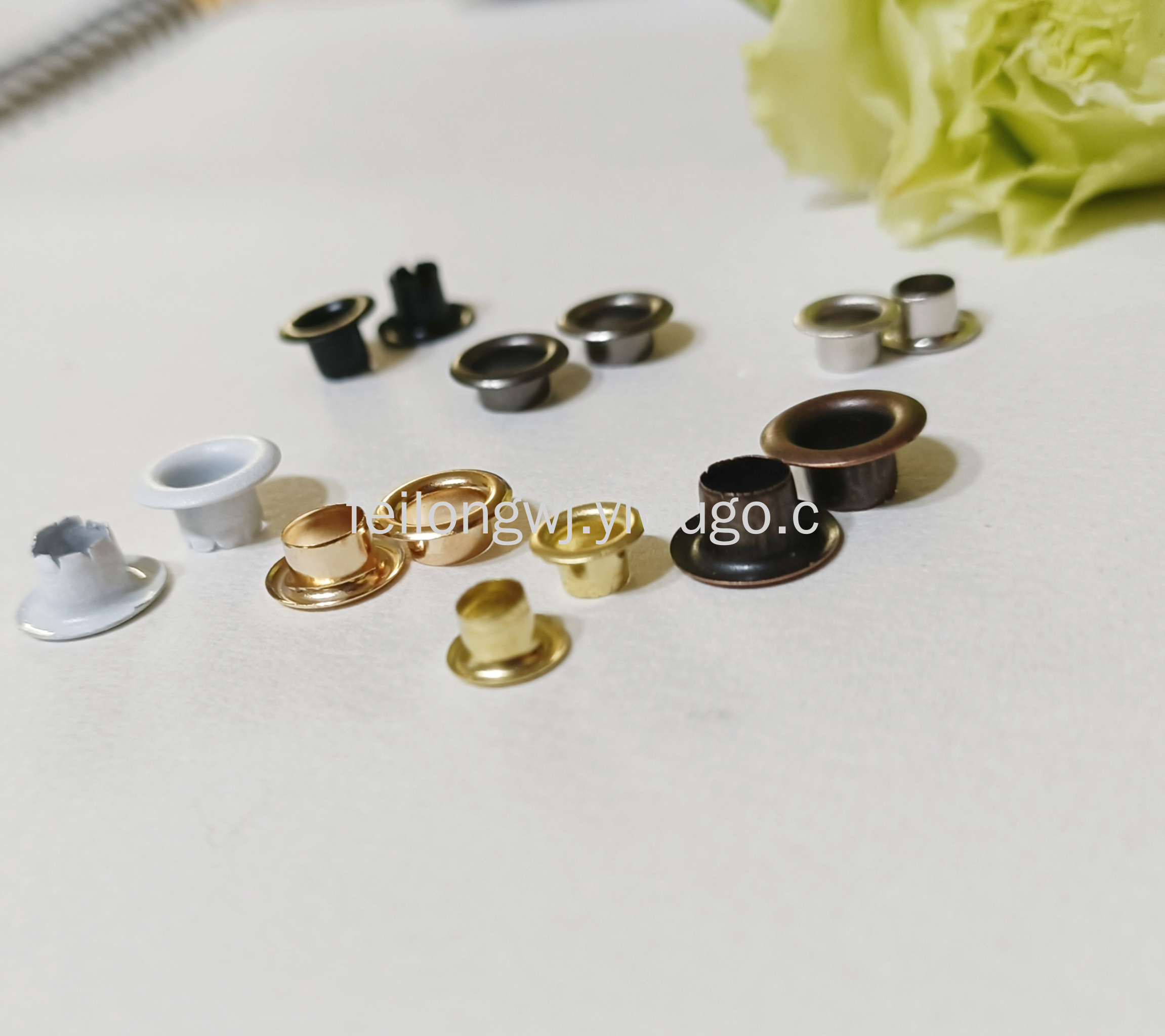 Ojo de pollo metálico inoxidable abrochado con ojeras, remachado con borde circular abrochado con pintura a la parrilla de cobre y hierro Chapada en oro y fijación de botones plateados